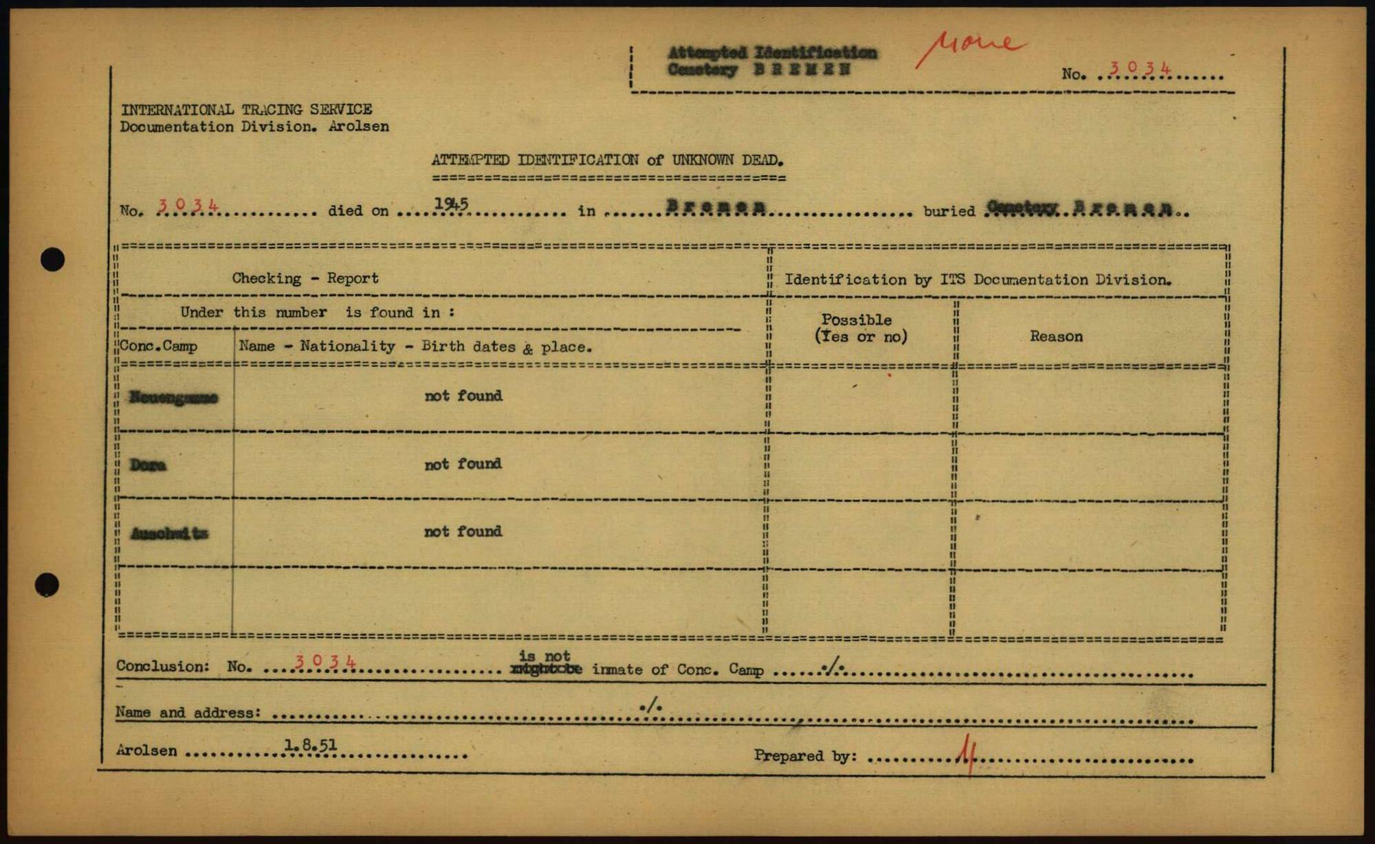 Einen Kommentar schreiben →Attempted Identification of Unknown Dead - Cemeteries: Ergebnisse der Identifizierung... 0031 (84613031)