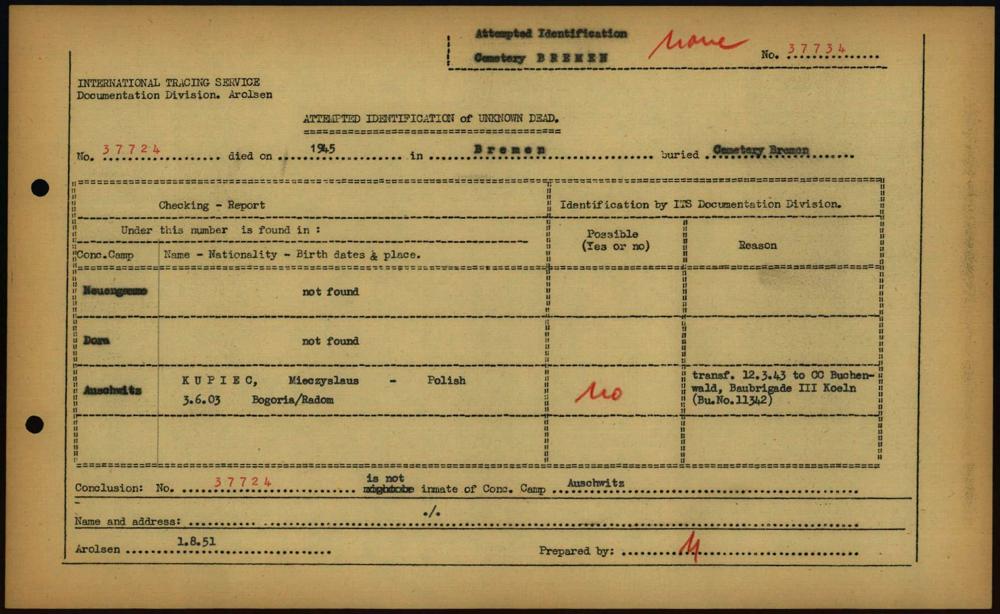 Einen Kommentar schreiben →Attempted Identification of Unknown Dead - Cemeteries: Ergebnisse der Identifizierung... 0147 (84613147)