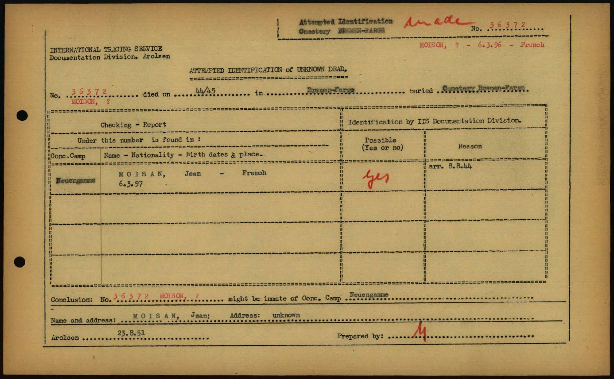 Einen Kommentar schreiben →Attempted Identification of Unknown Dead - Cemeteries: Ergebnisse der Identifizierung... 0227 (84613464)