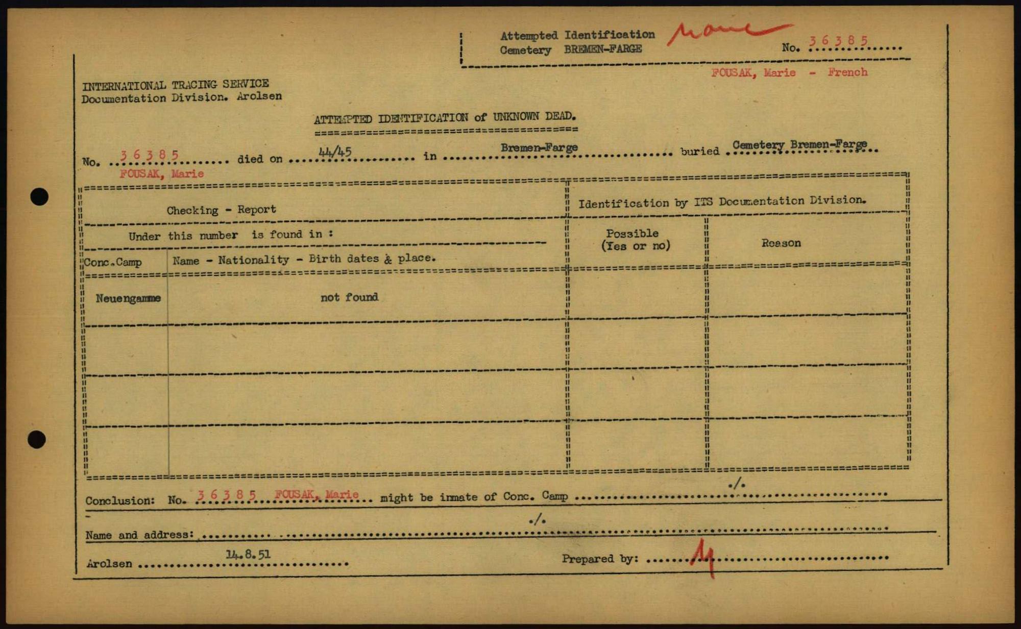 Einen Kommentar schreiben →Attempted Identification of Unknown Dead - Cemeteries: Ergebnisse der Identifizierung... 0229 (84613466)