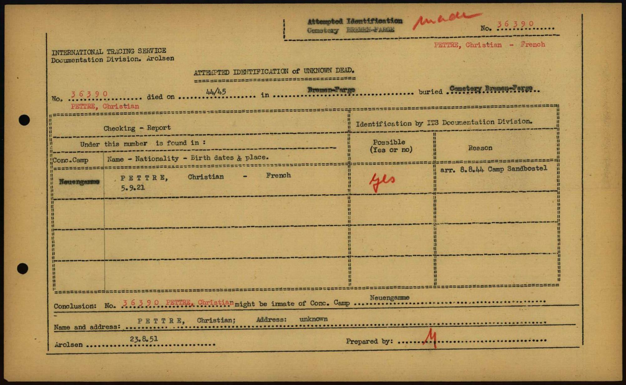 Einen Kommentar schreiben →Attempted Identification of Unknown Dead - Cemeteries: Ergebnisse der Identifizierung... 0230 (84613467)