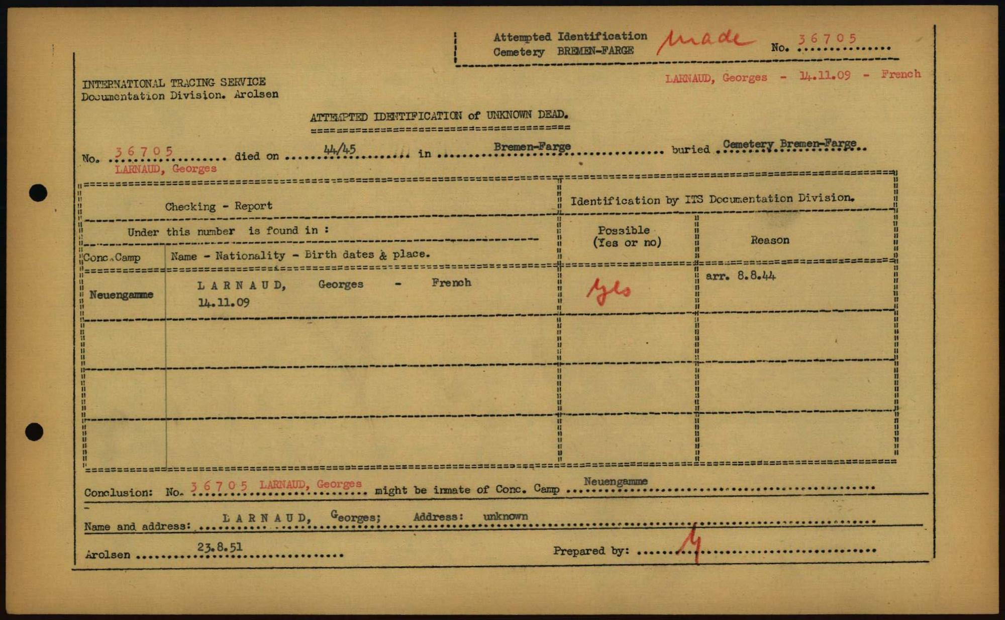 Einen Kommentar schreiben →Attempted Identification of Unknown Dead - Cemeteries: Ergebnisse der Identifizierung... 0282 (84613519)