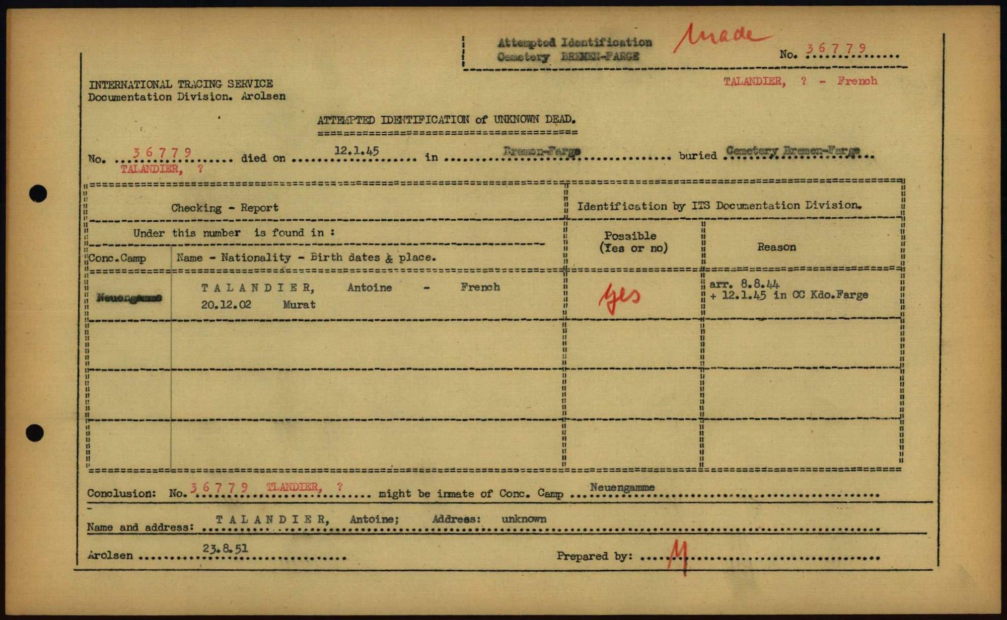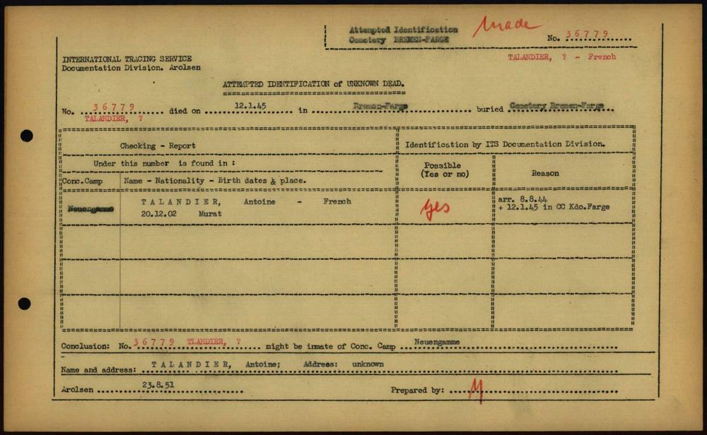 Einen Kommentar schreiben →Attempted Identification of Unknown Dead - Cemeteries: Ergebnisse der Identifizierung... 0293 (84613530)
