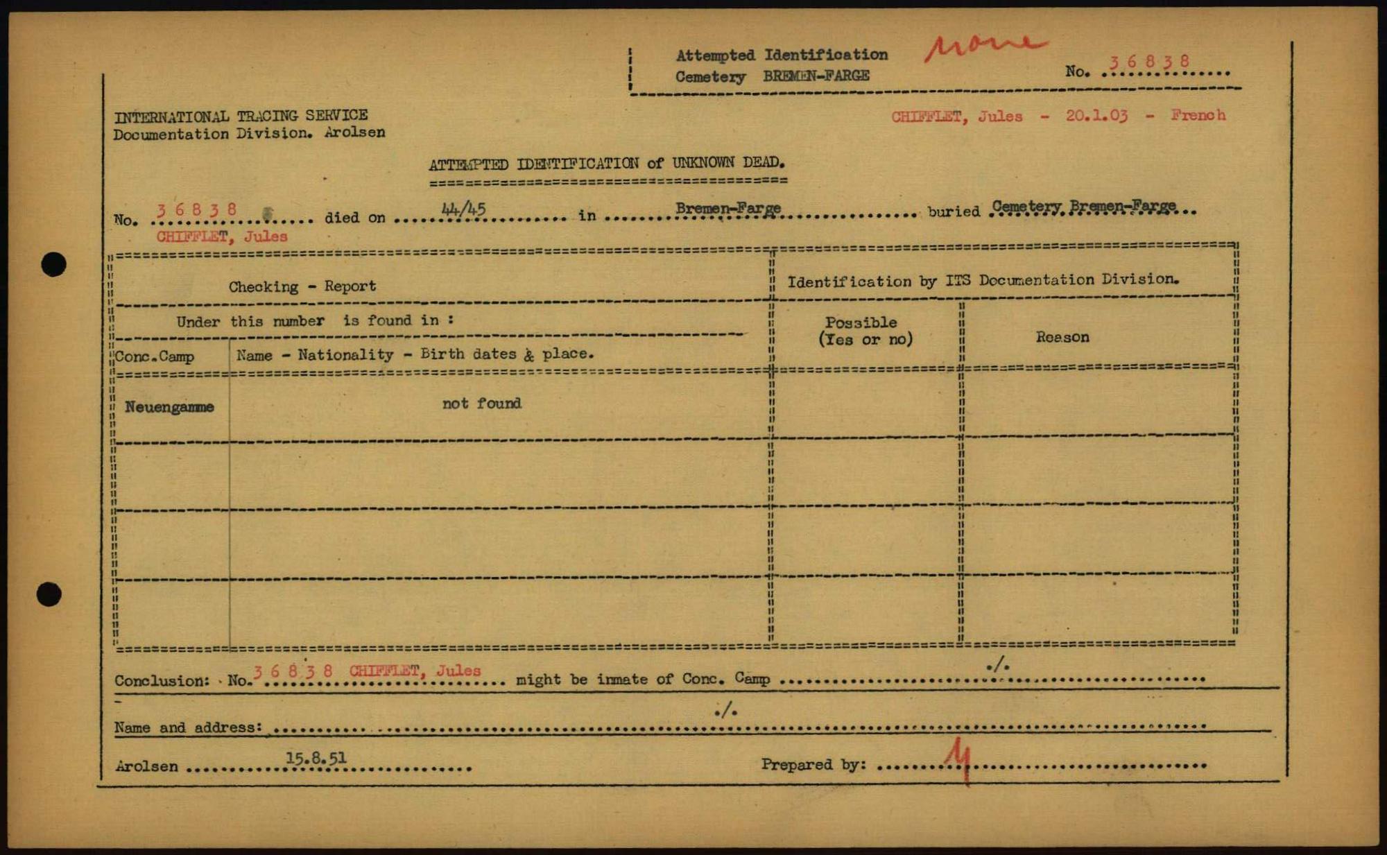 Einen Kommentar schreiben →Attempted Identification of Unknown Dead - Cemeteries: Ergebnisse der Identifizierung... 0308 (84613545)