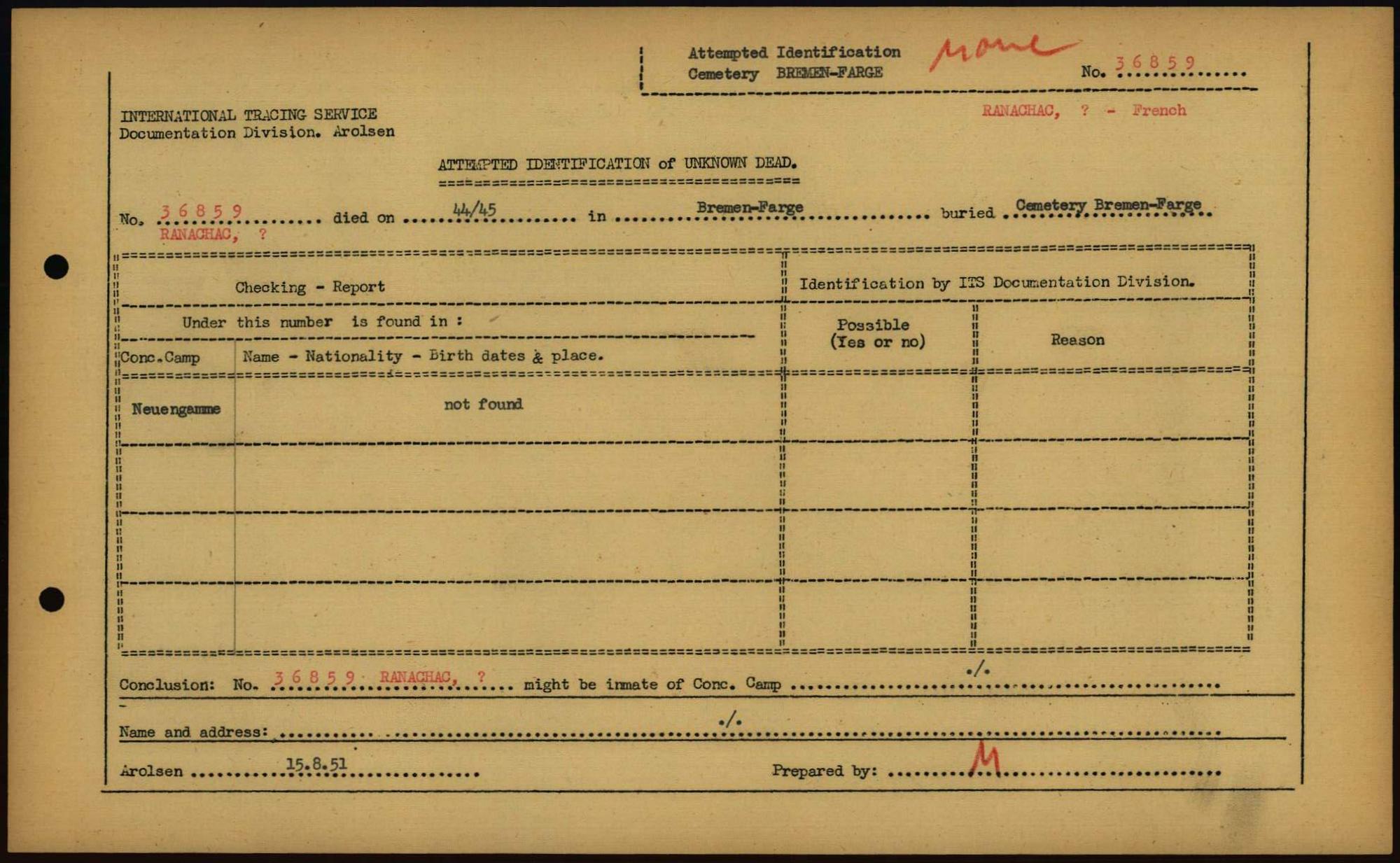Einen Kommentar schreiben →Attempted Identification of Unknown Dead - Cemeteries: Ergebnisse der Identifizierung... 0312 (84613549)