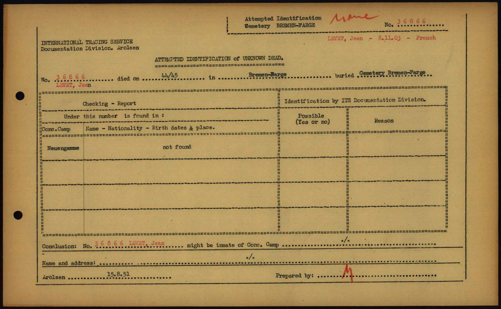 Einen Kommentar schreiben →Attempted Identification of Unknown Dead - Cemeteries: Ergebnisse der Identifizierung... 0316 (84613553)