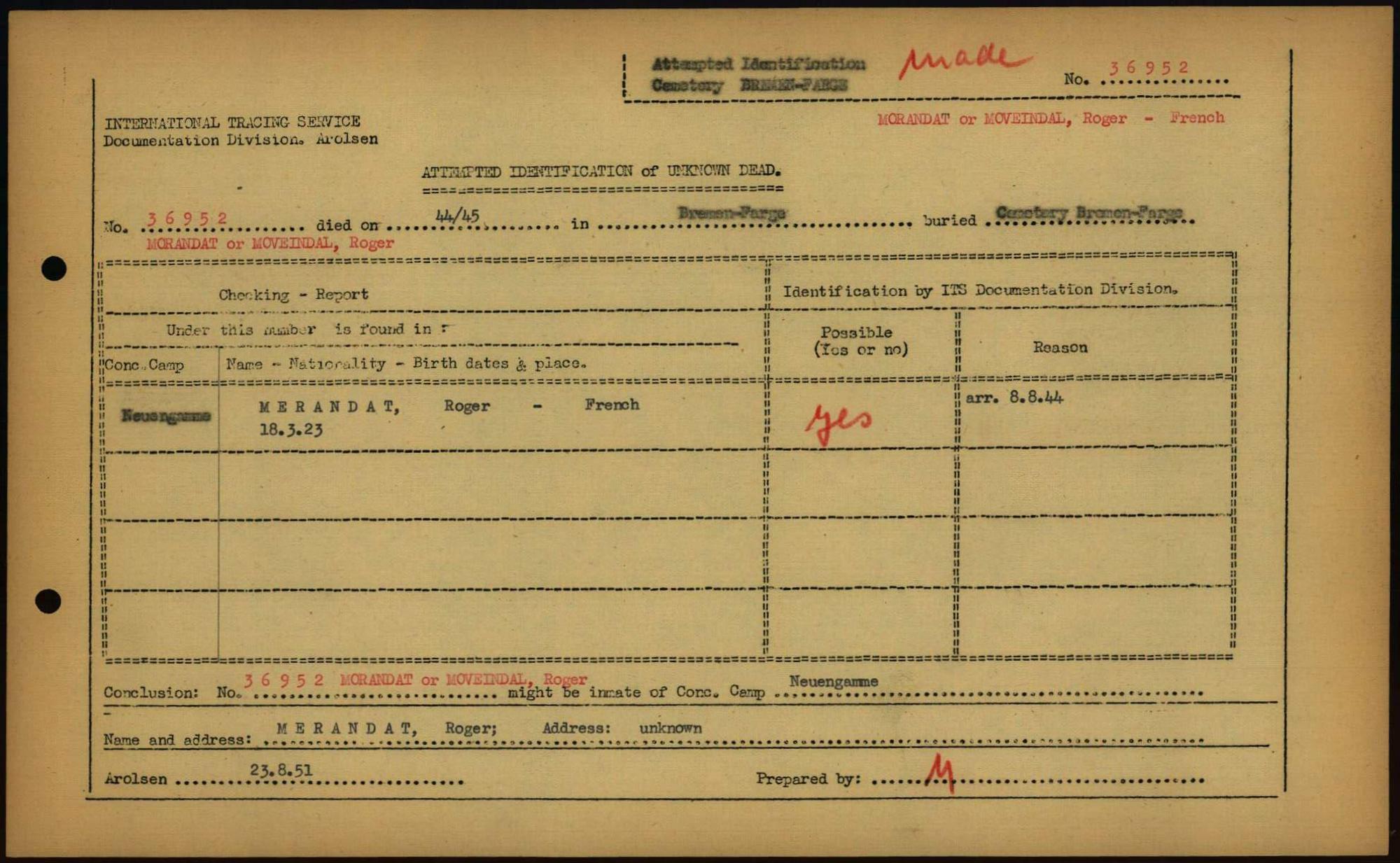 Einen Kommentar schreiben →Attempted Identification of Unknown Dead - Cemeteries: Ergebnisse der Identifizierung... 0333 (84613570)