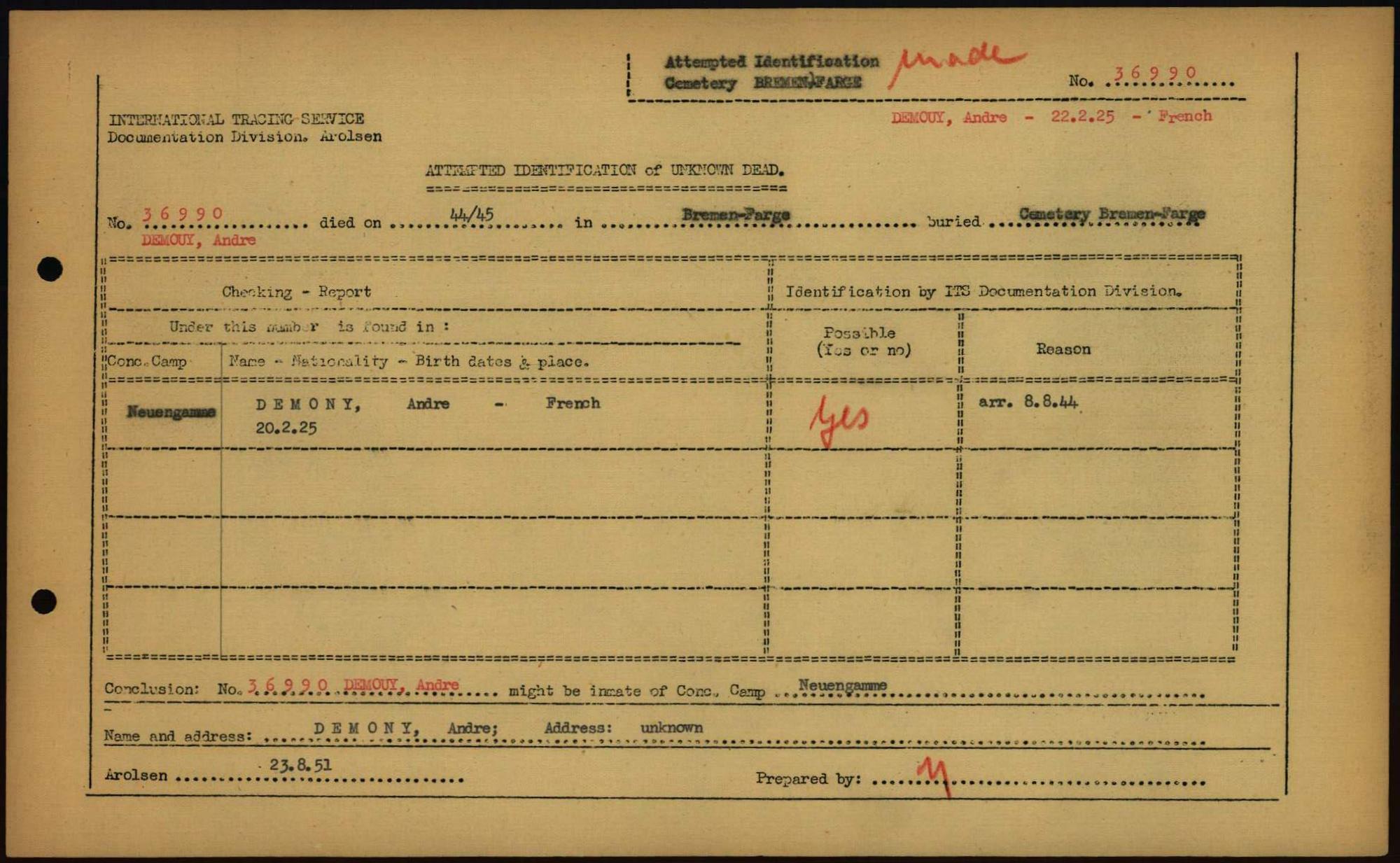 Einen Kommentar schreiben →Attempted Identification of Unknown Dead - Cemeteries: Ergebnisse der Identifizierung... 0347 (84613584)