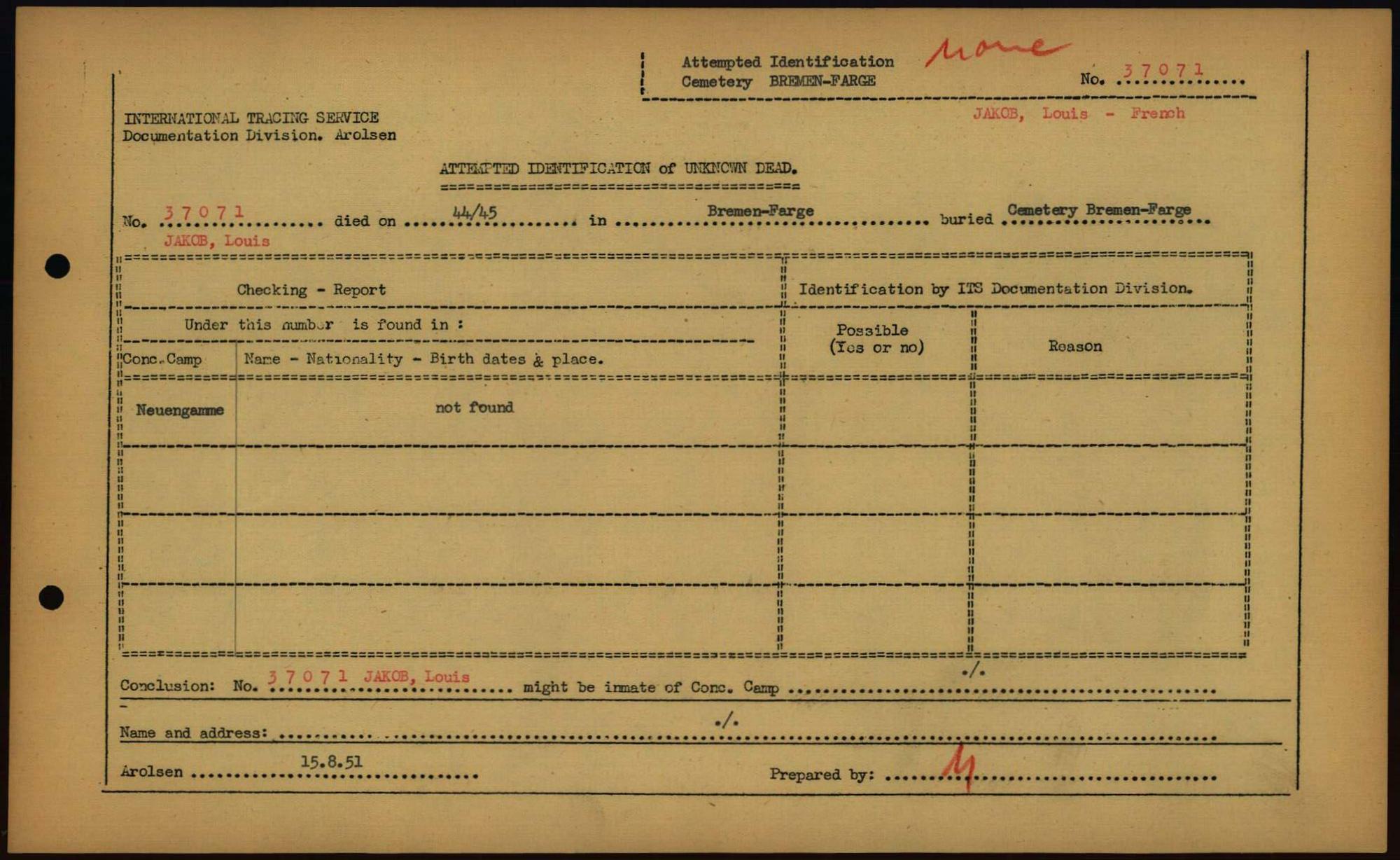 Einen Kommentar schreiben →Attempted Identification of Unknown Dead - Cemeteries: Ergebnisse der Identifizierung... 0016 (84613603)