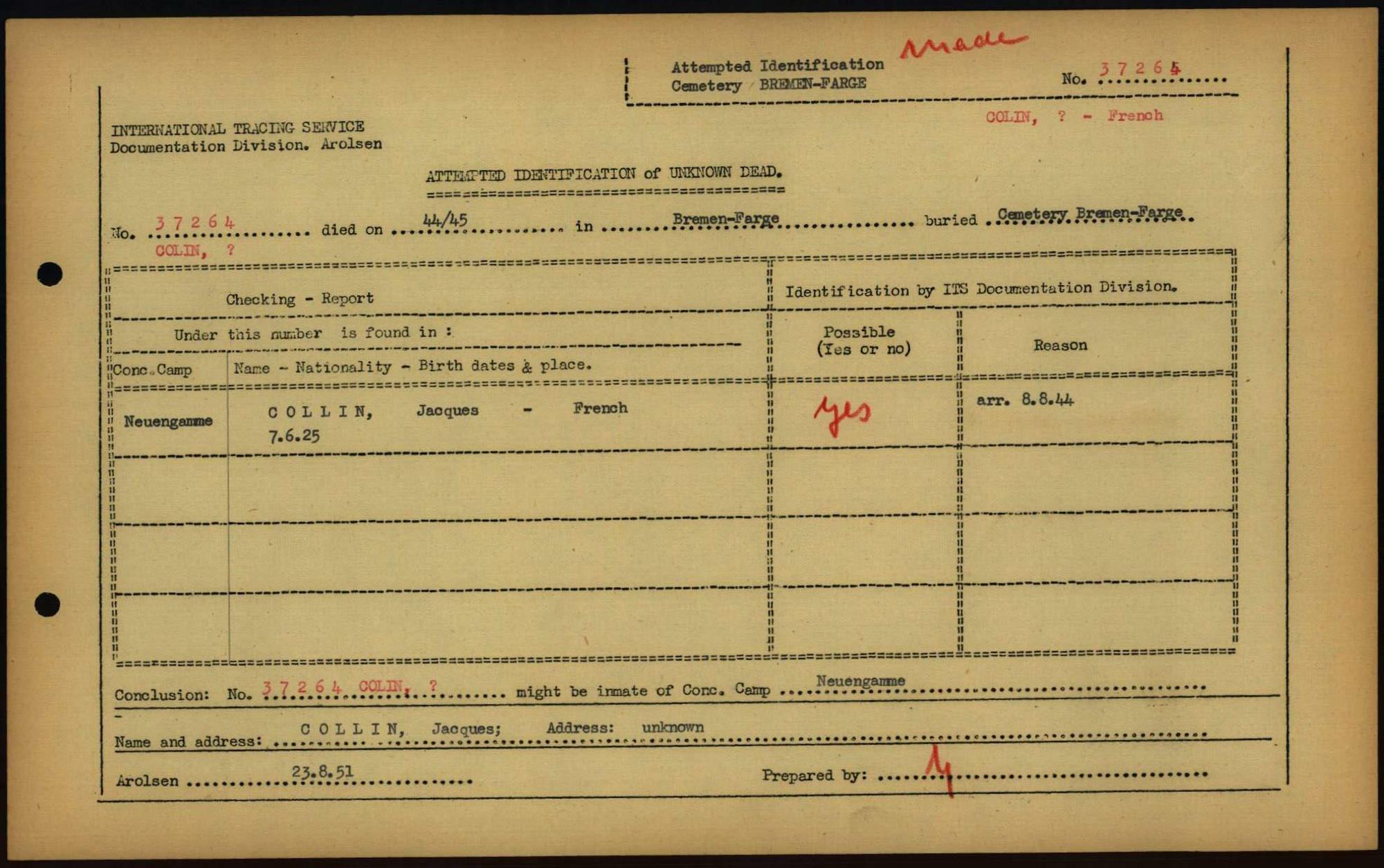 Einen Kommentar schreiben →Attempted Identification of Unknown Dead - Cemeteries: Ergebnisse der Identifizierung... 0073 (84613660)