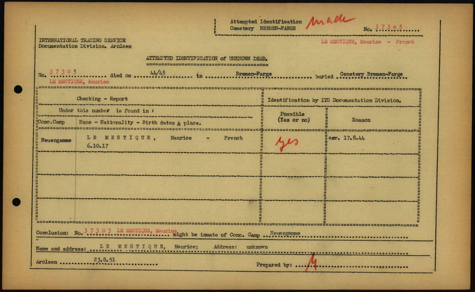 Einen Kommentar schreiben →Attempted Identification of Unknown Dead - Cemeteries: Ergebnisse der Identifizierung... 0082 (84613669)