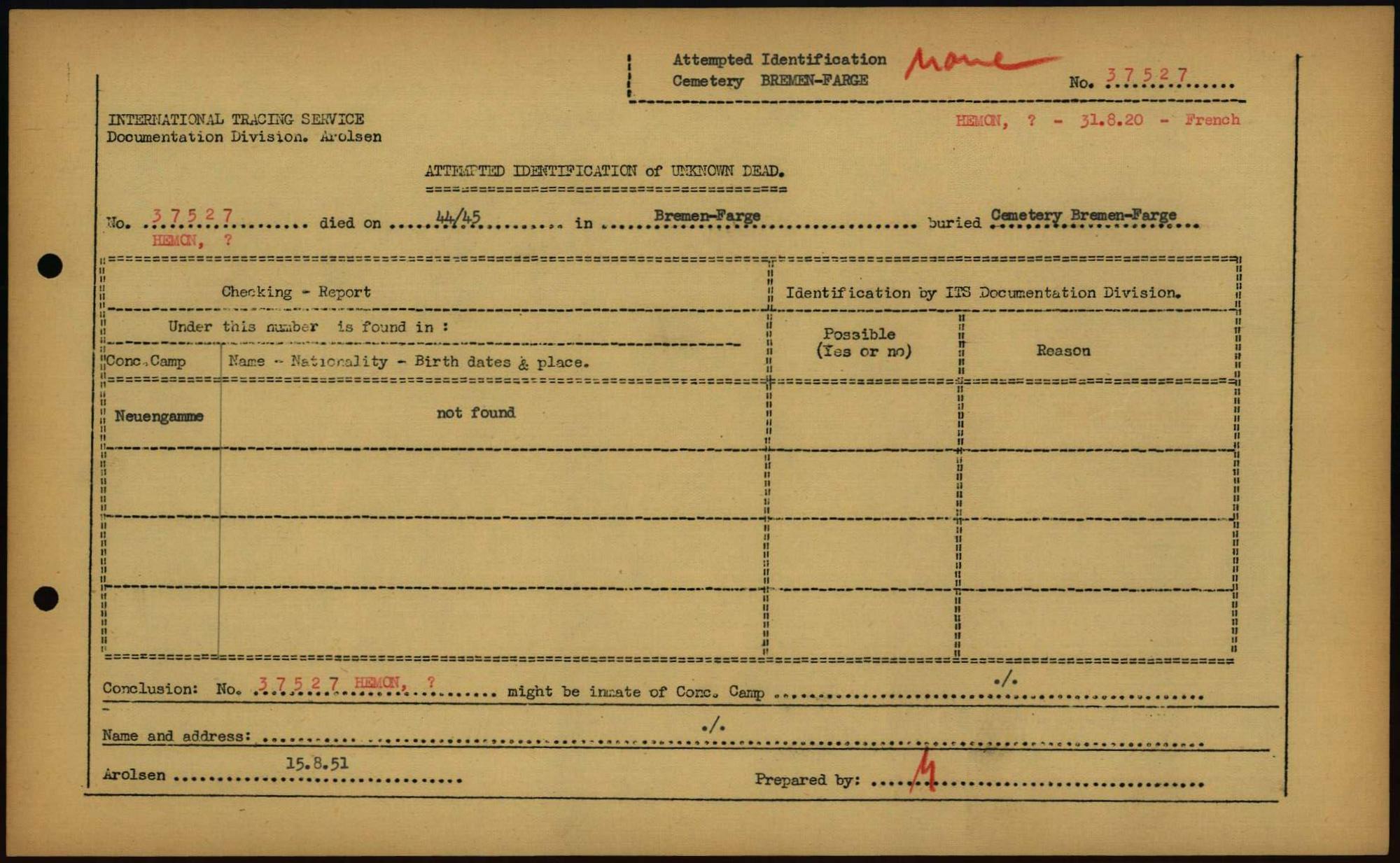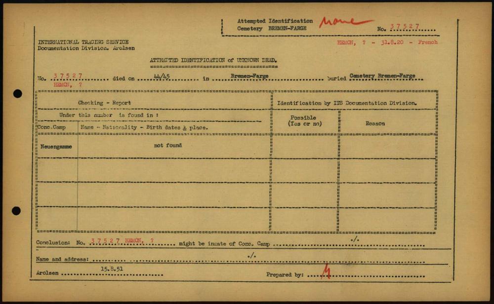 Einen Kommentar schreiben →Attempted Identification of Unknown Dead - Cemeteries: Ergebnisse der Identifizierung... 0113 (84613700)