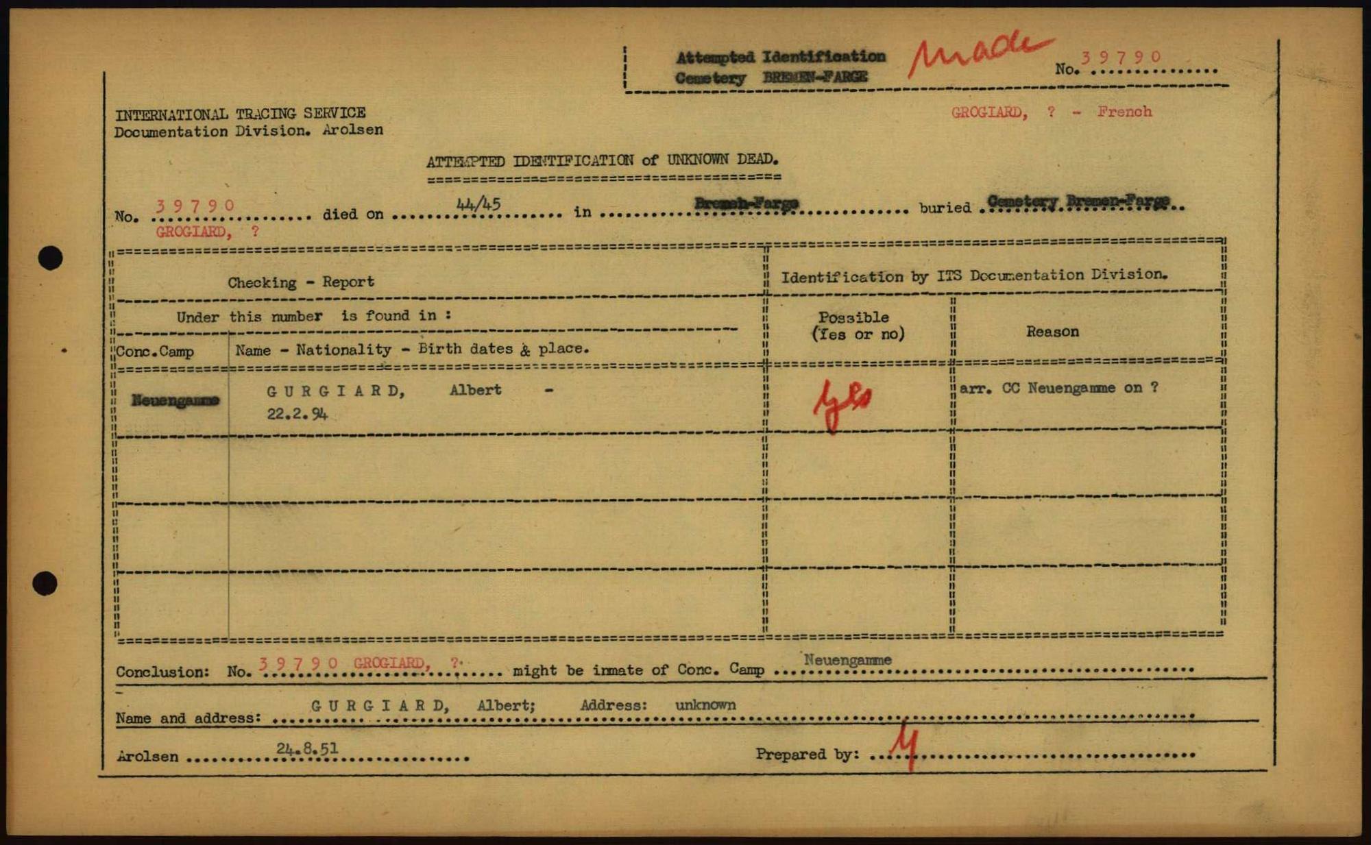 Einen Kommentar schreiben →Attempted Identification of Unknown Dead - Cemeteries: Ergebnisse der Identifizierung... 0182 (84613769)
