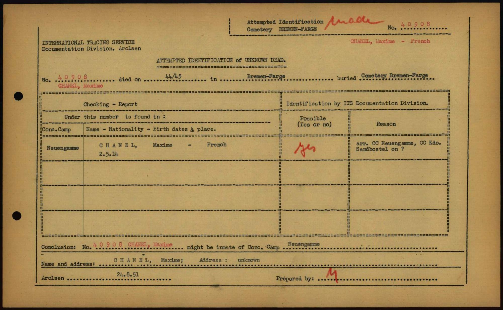Einen Kommentar schreiben →Attempted Identification of Unknown Dead - Cemeteries: Ergebnisse der Identifizierung... 0193 (84613780)