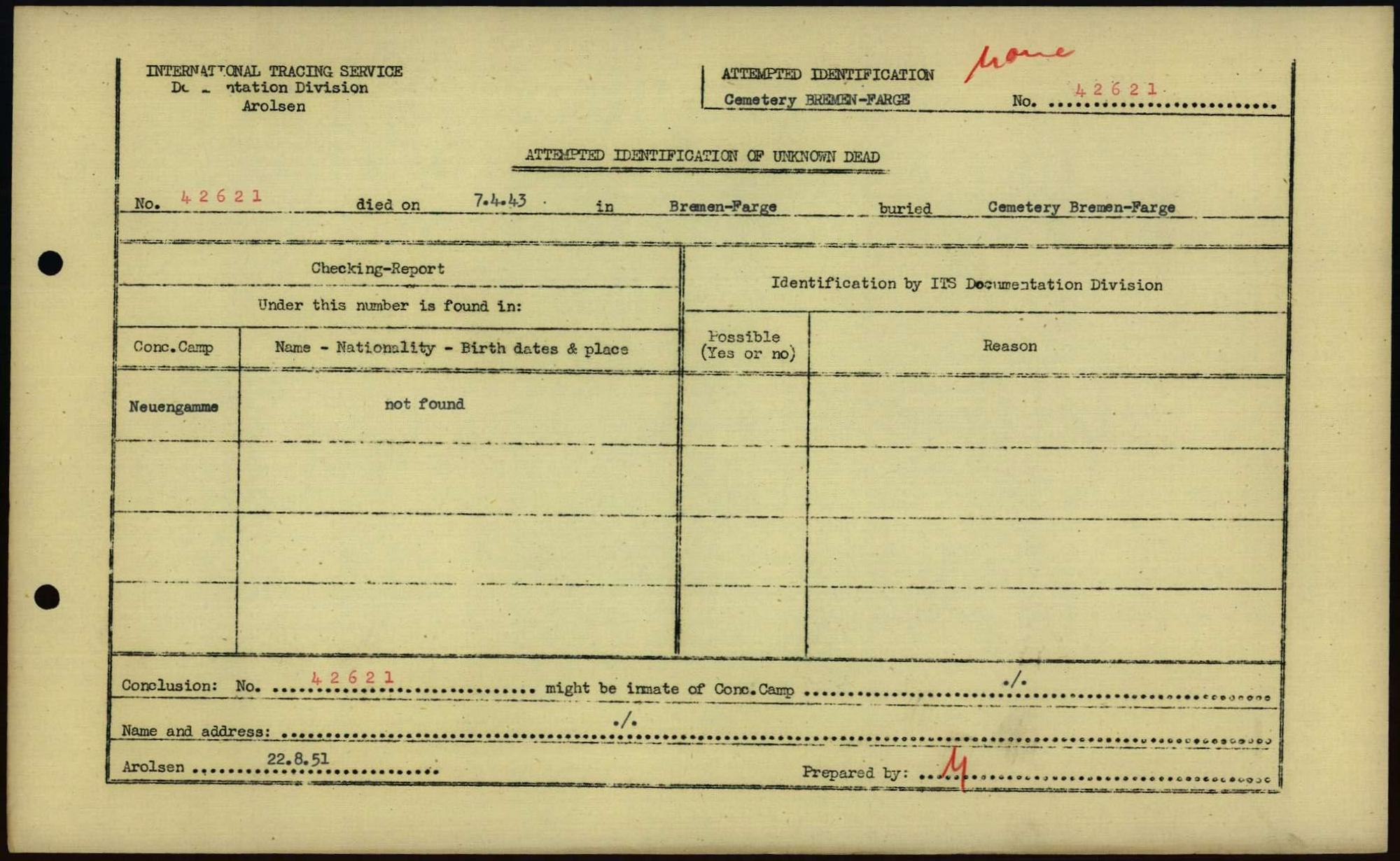 Einen Kommentar schreiben →Attempted Identification of Unknown Dead - Cemeteries: Ergebnisse der Identifizierung... 0198 (84613785)