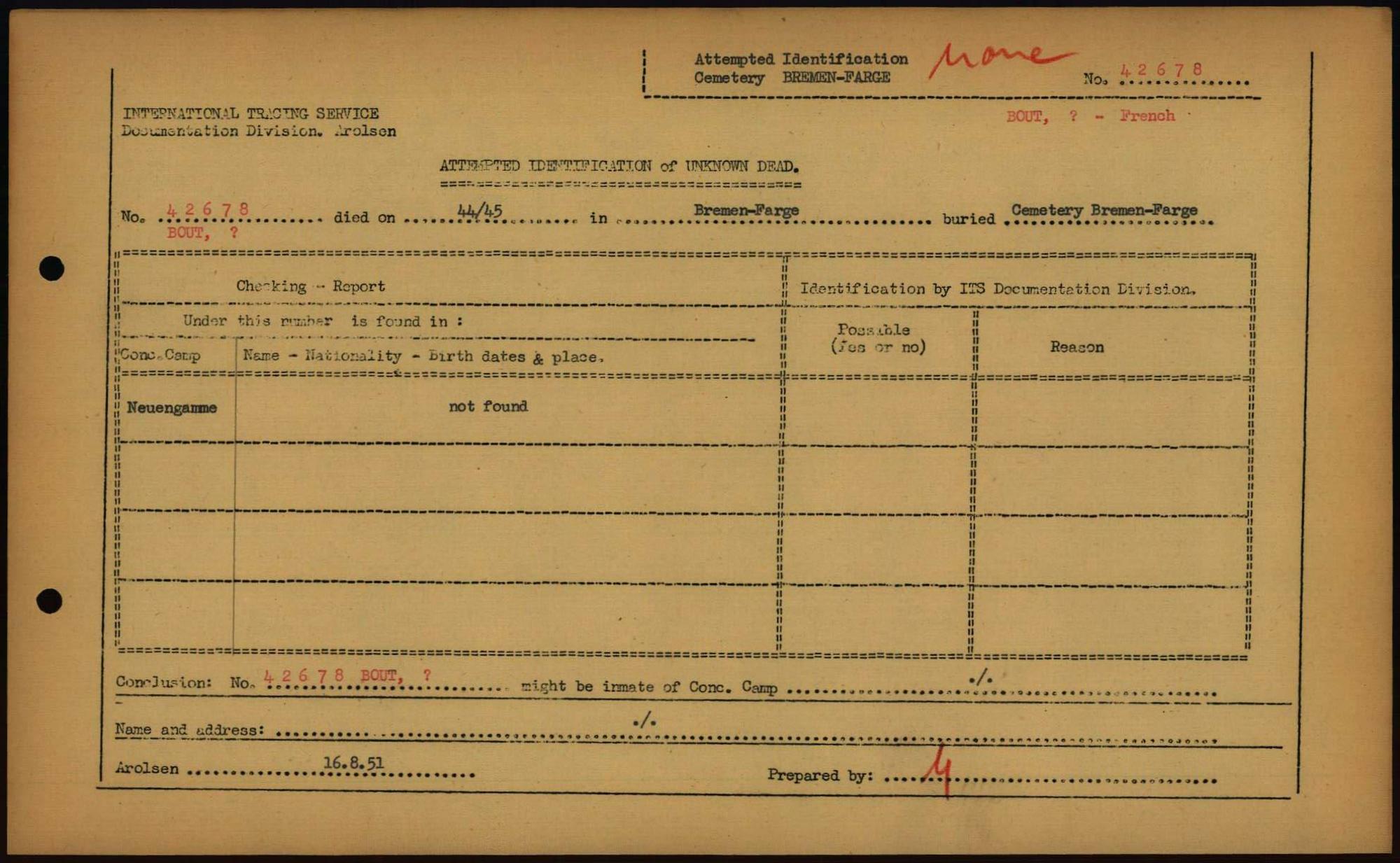 Einen Kommentar schreiben →Attempted Identification of Unknown Dead - Cemeteries: Ergebnisse der Identifizierung... 0200 (84613787)