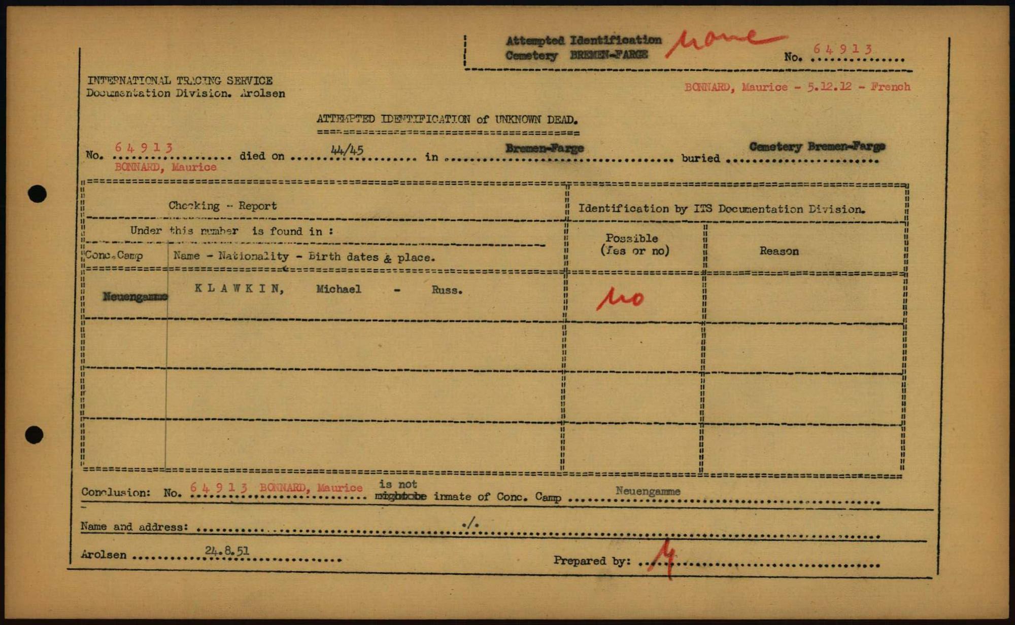 Einen Kommentar schreiben →Attempted Identification of Unknown Dead - Cemeteries: Ergebnisse der Identifizierung... 0246 (84613833)