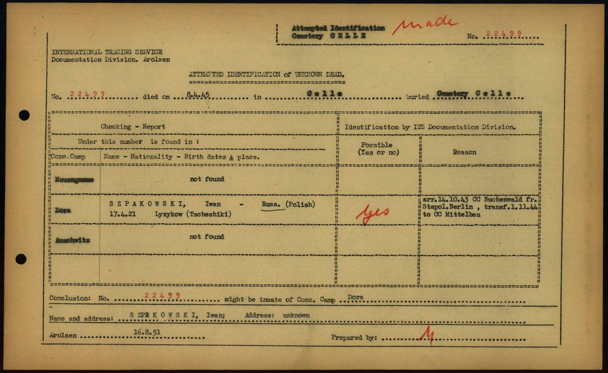 Einen Kommentar schreiben →Attempted Identification of Unknown Dead - Cemeteries: Ergebnisse der Identifizierung... 0065 (84614011)