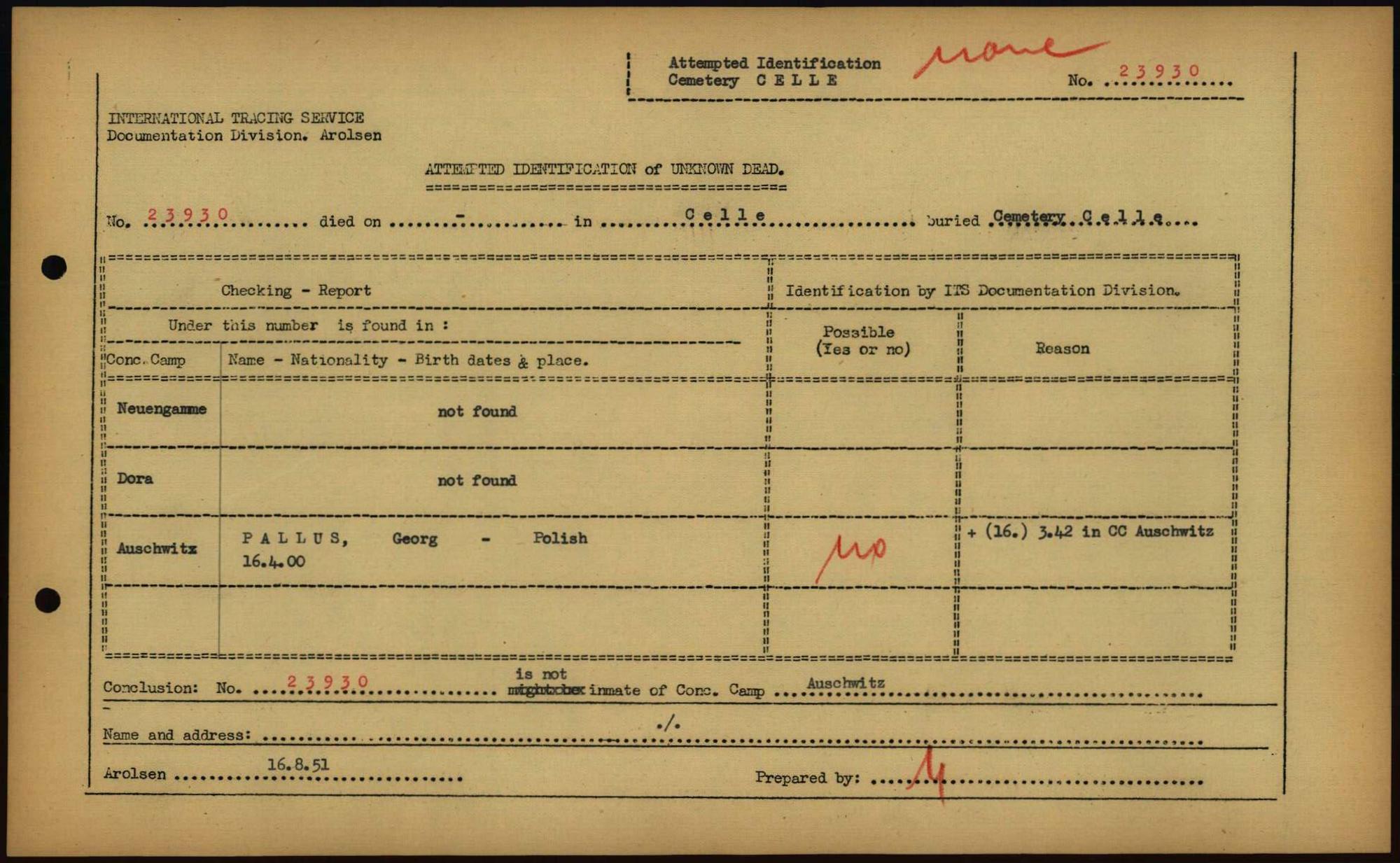 Einen Kommentar schreiben →Attempted Identification of Unknown Dead - Cemeteries: Ergebnisse der Identifizierung... 0079 (84614025)