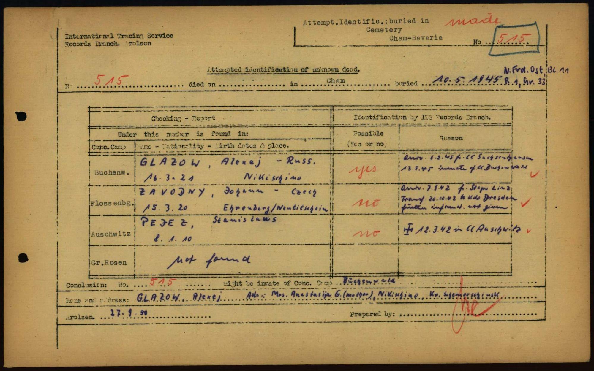 Einen Kommentar schreiben →Attempted Identification of Unknown Dead - Cemeteries: Ergebnisse der Identifizierung... 0029 (84614120)