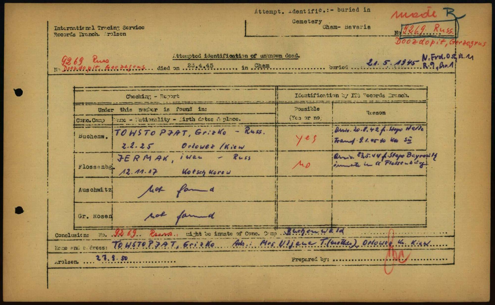 Einen Kommentar schreiben →Attempted Identification of Unknown Dead - Cemeteries: Ergebnisse der Identifizierung... 0053 (84614144)