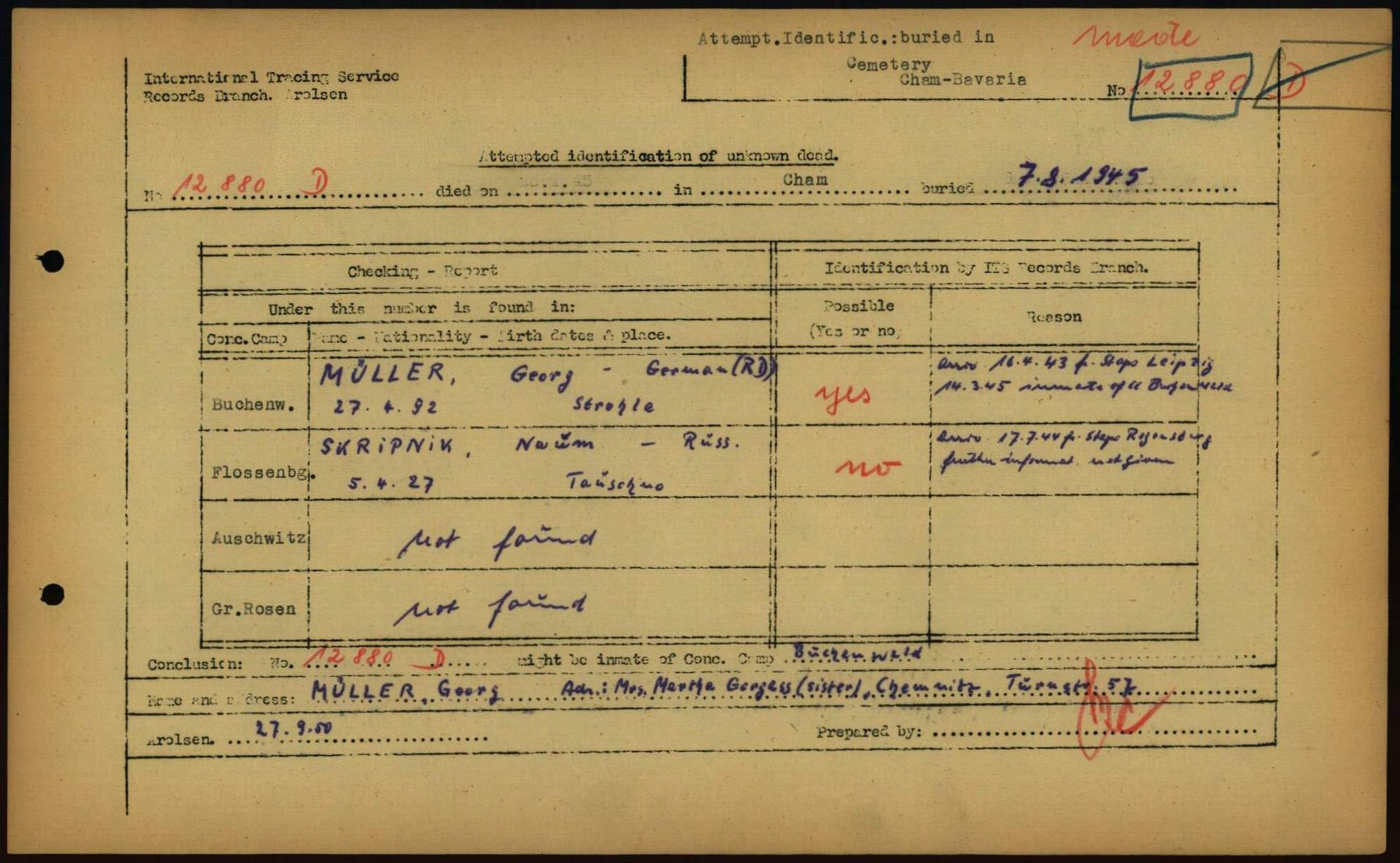 Einen Kommentar schreiben →Attempted Identification of Unknown Dead - Cemeteries: Ergebnisse der Identifizierung... 0063 (84614154)