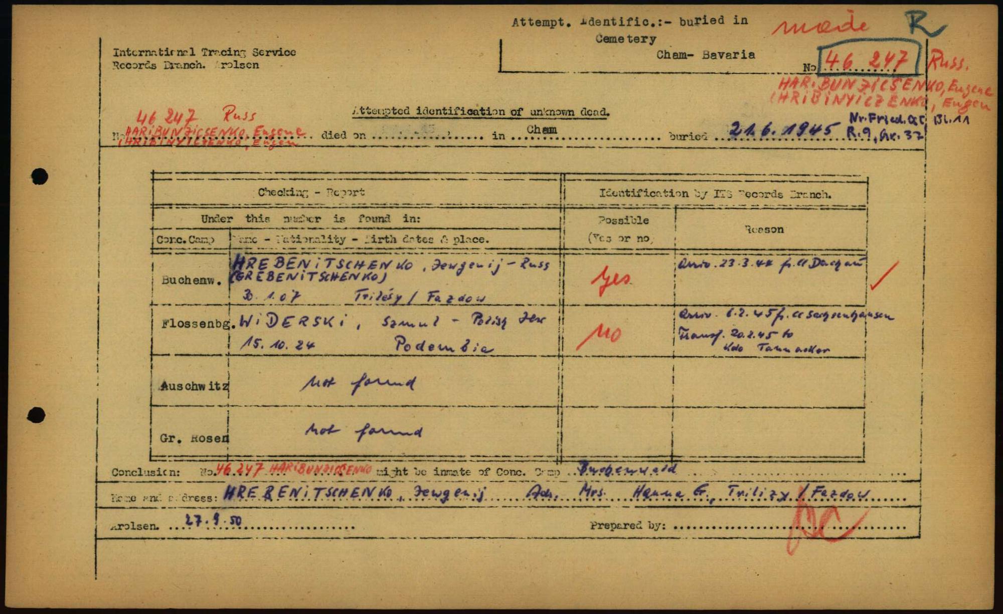Einen Kommentar schreiben →Attempted Identification of Unknown Dead - Cemeteries: Ergebnisse der Identifizierung... 0094 (84614185)