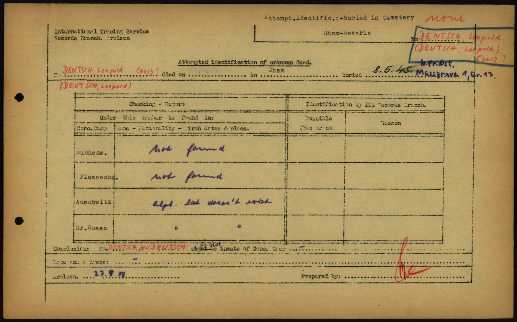 Einen Kommentar schreiben →Attempted Identification of Unknown Dead - Cemeteries: Ergebnisse der Identifizierung... 0165 (84614256)