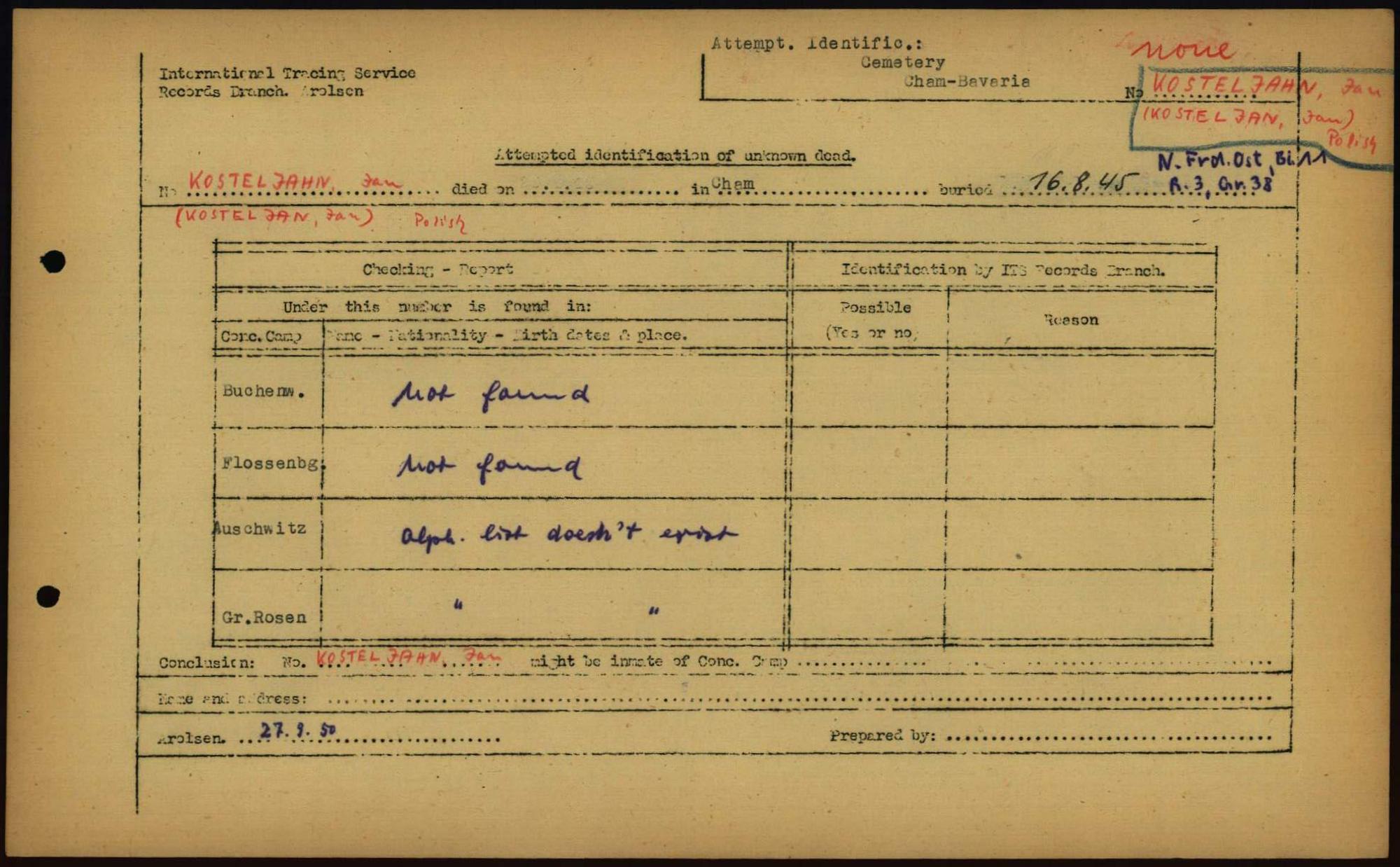Einen Kommentar schreiben →Attempted Identification of Unknown Dead - Cemeteries: Ergebnisse der Identifizierung... 0206 (84614297)
