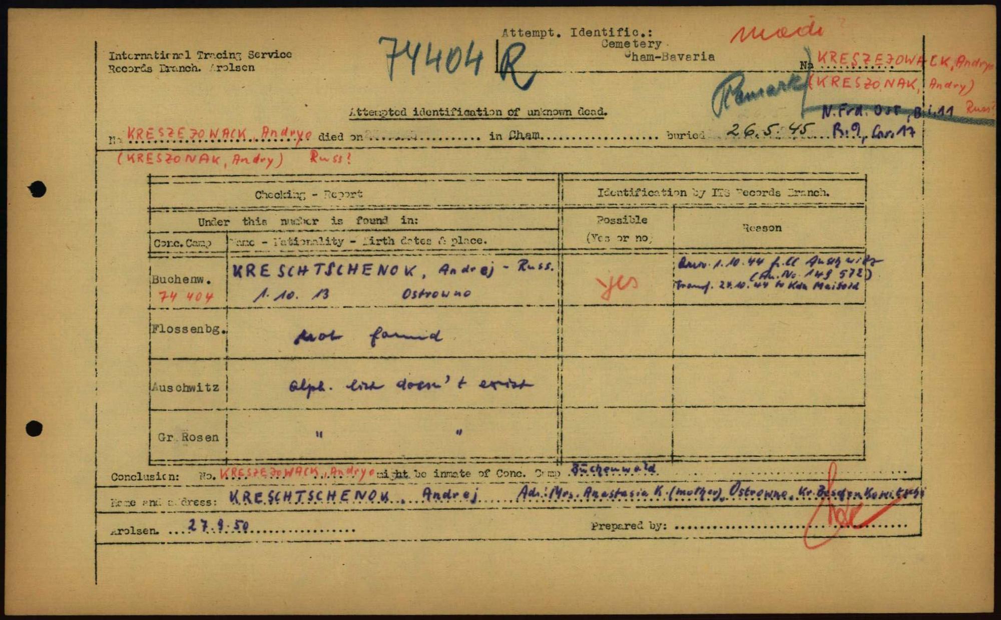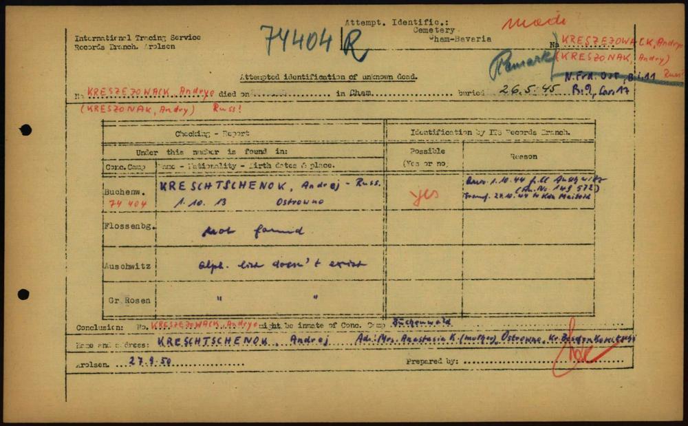 Einen Kommentar schreiben →Attempted Identification of Unknown Dead - Cemeteries: Ergebnisse der Identifizierung... 0209 (84614300)