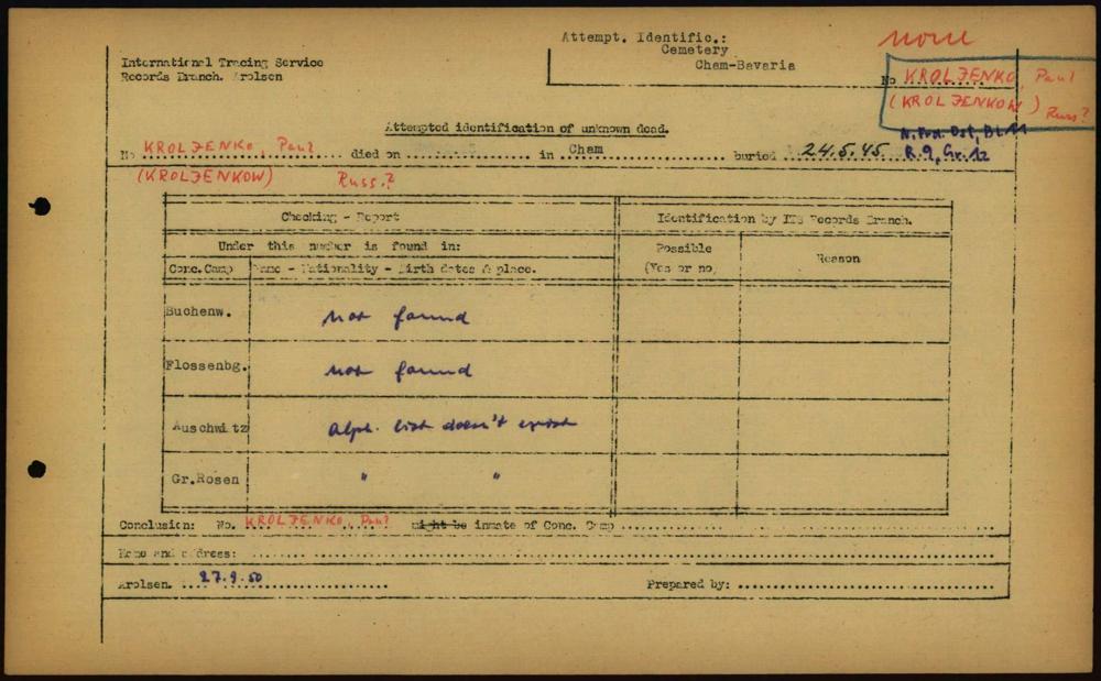 Einen Kommentar schreiben →Attempted Identification of Unknown Dead - Cemeteries: Ergebnisse der Identifizierung... 0210 (84614301)