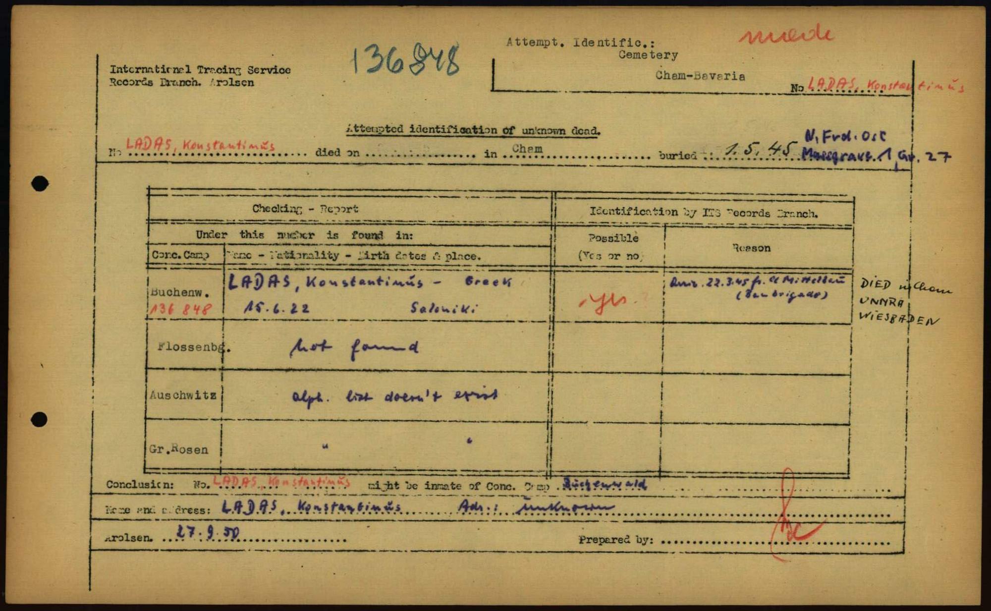 Einen Kommentar schreiben →Attempted Identification of Unknown Dead - Cemeteries: Ergebnisse der Identifizierung... 0213 (84614304)