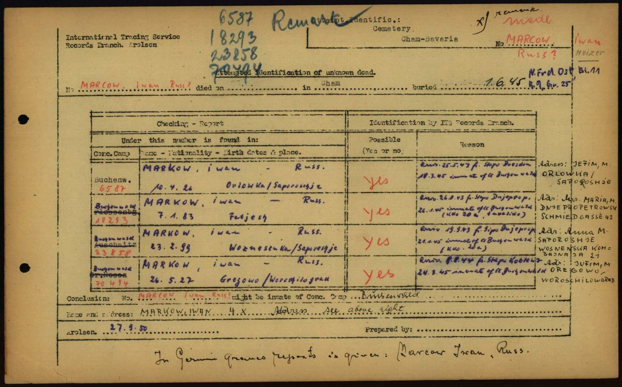 Einen Kommentar schreiben →Attempted Identification of Unknown Dead - Cemeteries: Ergebnisse der Identifizierung... 0230 (84614321)