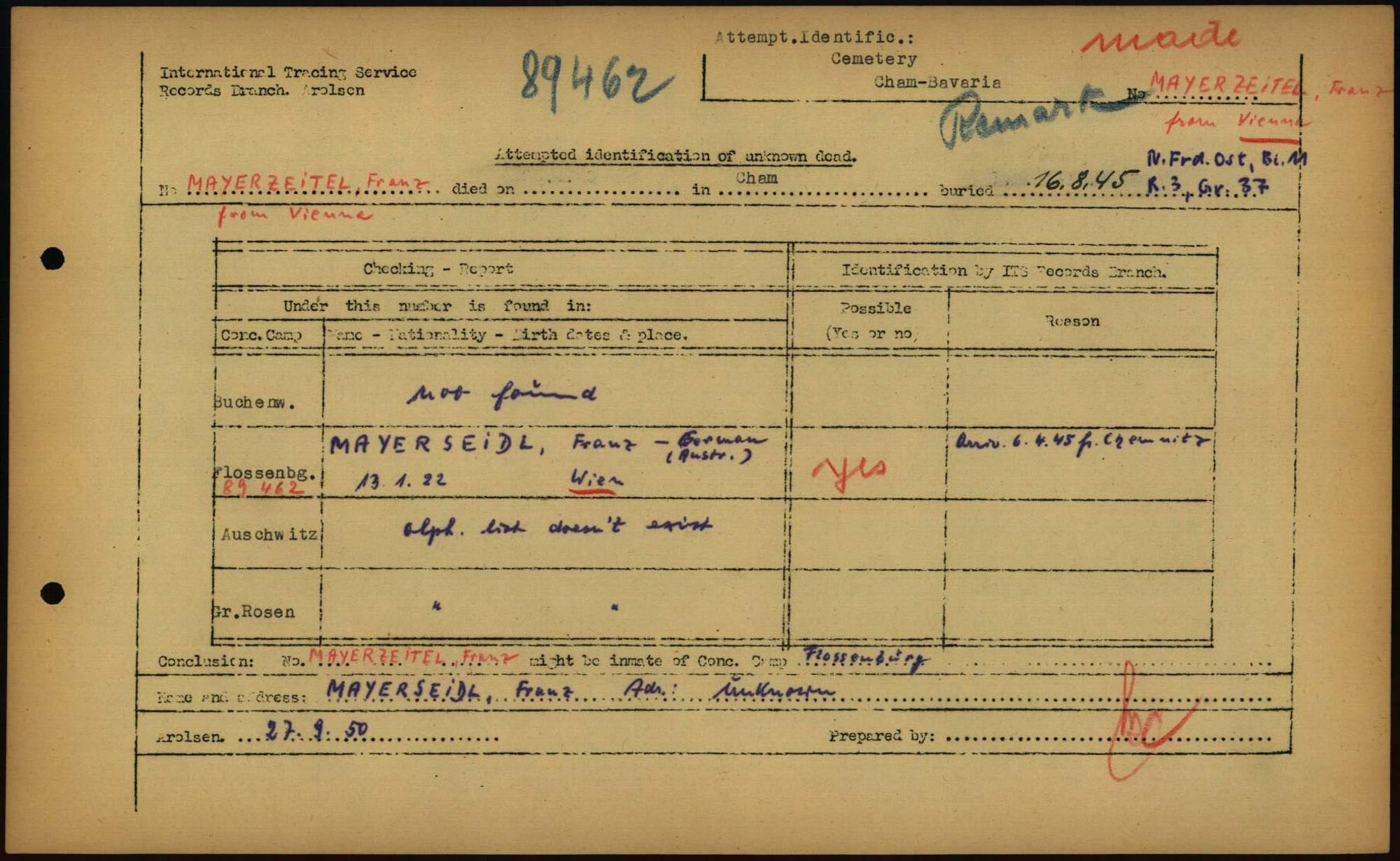 Einen Kommentar schreiben →Attempted Identification of Unknown Dead - Cemeteries: Ergebnisse der Identifizierung... 0234 (84614325)