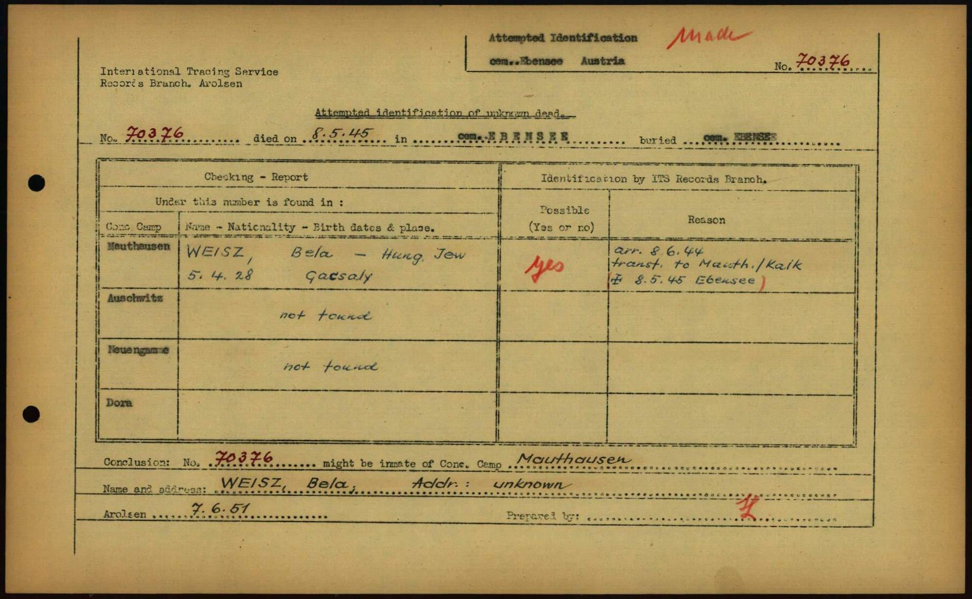 Einen Kommentar schreiben →Attempted Identification of Unknown Dead - Cemeteries: Ergebnisse der Identifizierung... 0040 (84614445)