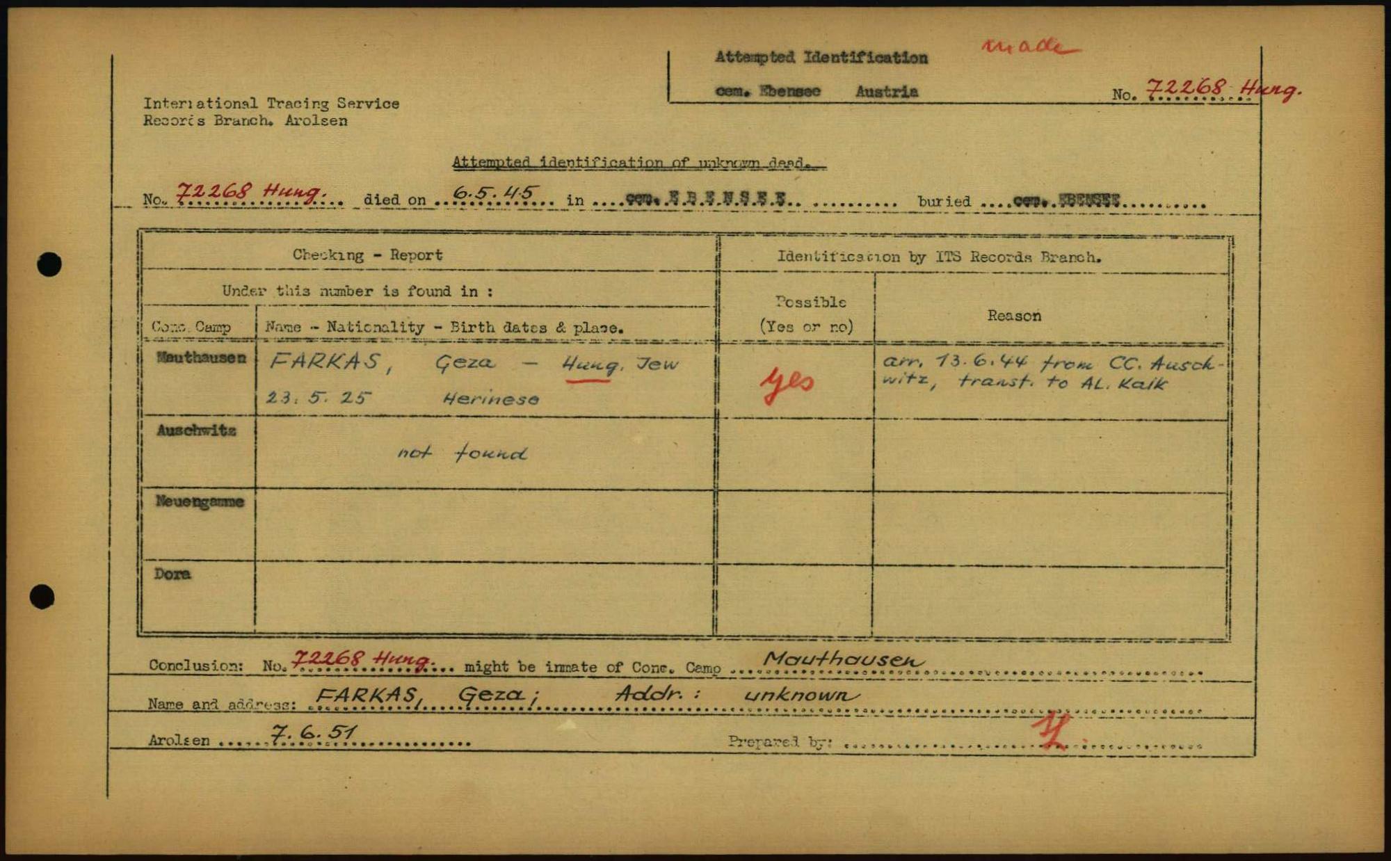 Einen Kommentar schreiben →Attempted Identification of Unknown Dead - Cemeteries: Ergebnisse der Identifizierung... 0042 (84614447)