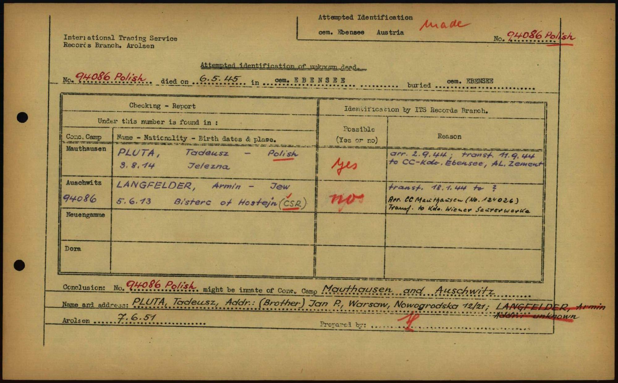 Einen Kommentar schreiben →Attempted Identification of Unknown Dead - Cemeteries: Ergebnisse der Identifizierung... 0077 (84614482)