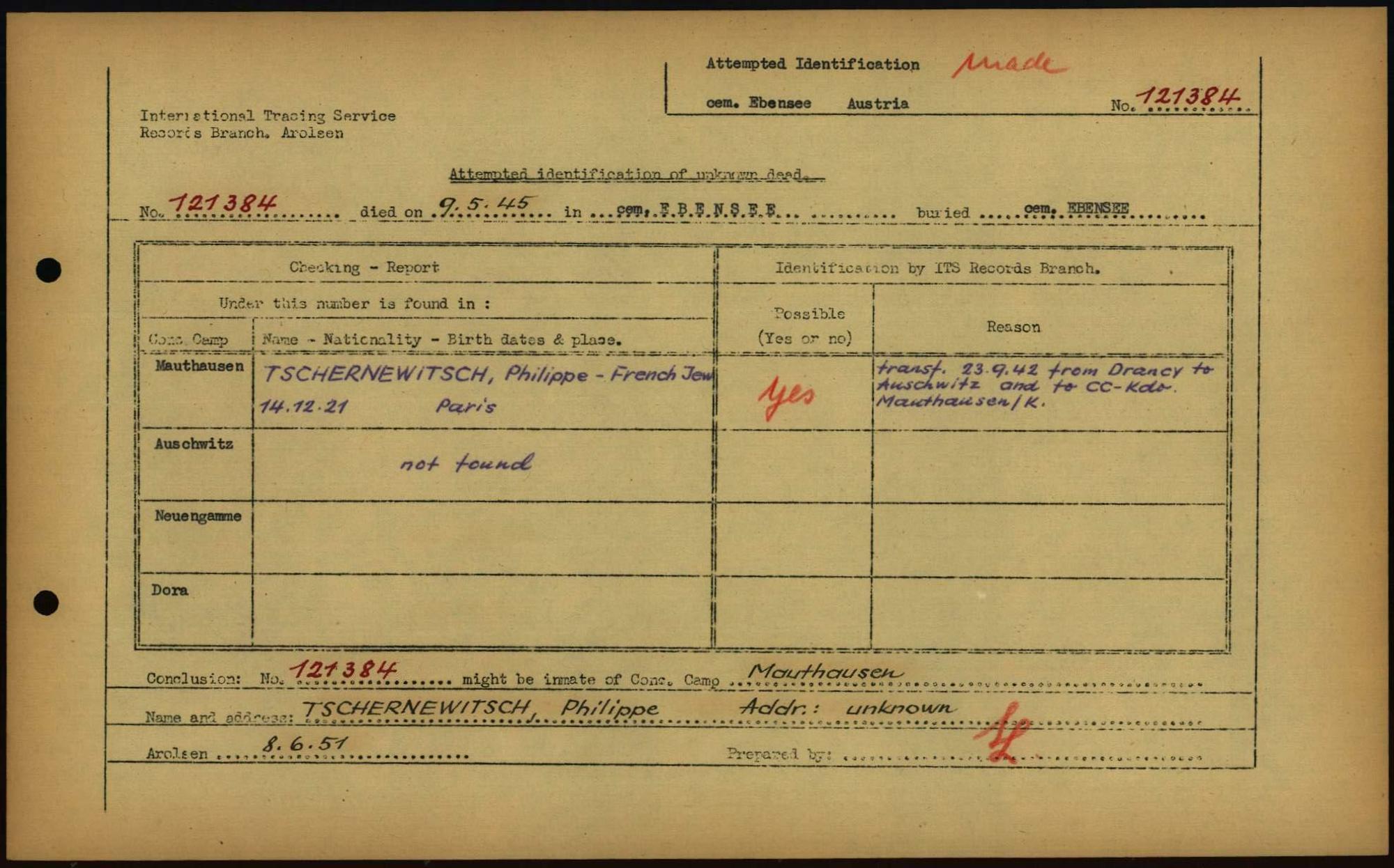 Einen Kommentar schreiben →Attempted Identification of Unknown Dead - Cemeteries: Ergebnisse der Identifizierung... 0109 (84614514)