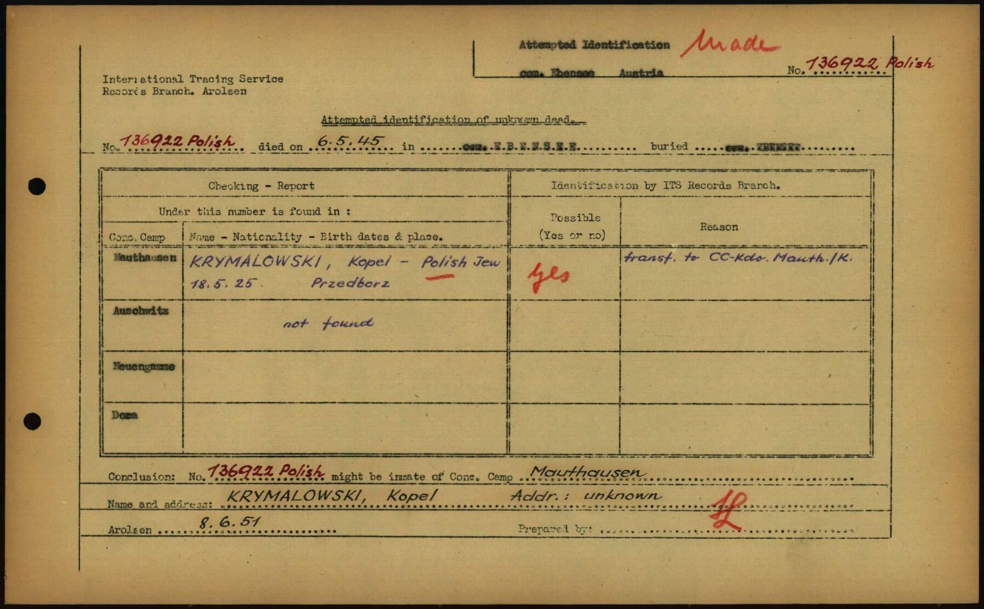 Einen Kommentar schreiben →Attempted Identification of Unknown Dead - Cemeteries: Ergebnisse der Identifizierung... 0134 (84614539)