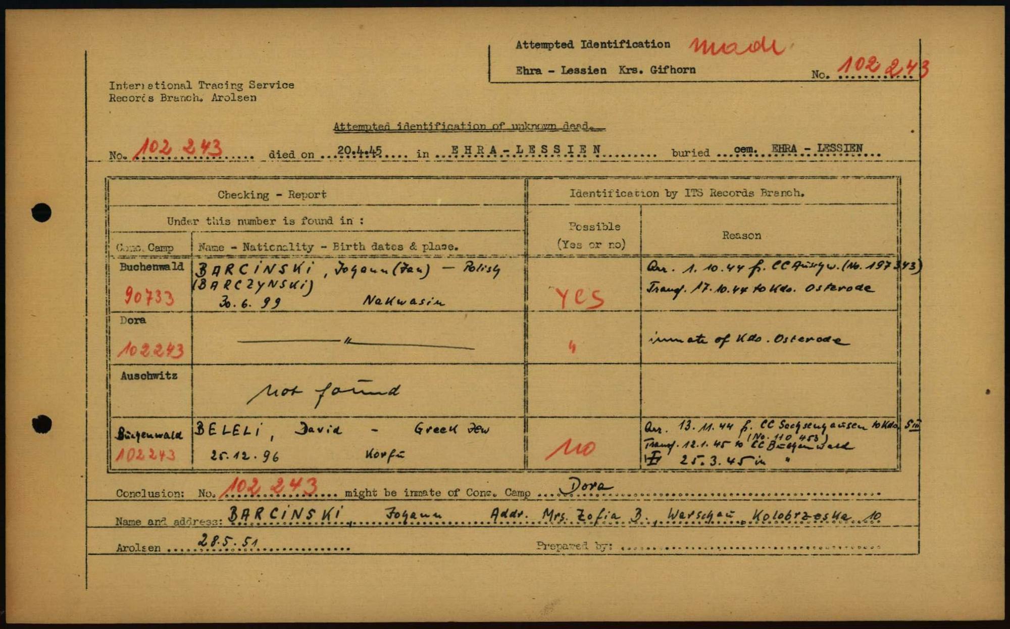 Einen Kommentar schreiben →Attempted Identification of Unknown Dead - Cemeteries: Ergebnisse der Identifizierung... 0004 (84614550)