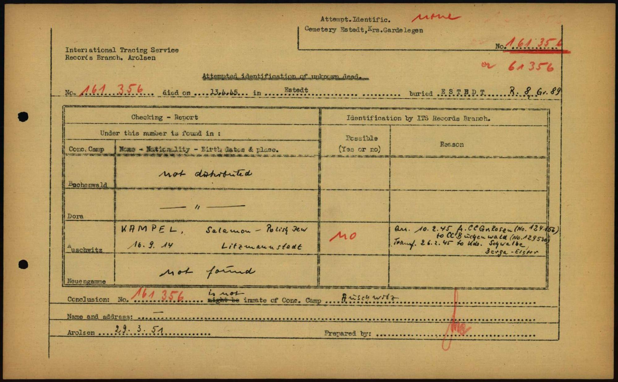 Einen Kommentar schreiben →Attempted Identification of Unknown Dead - Cemeteries: Ergebnisse der Identifizierung... 0031 (84614583)