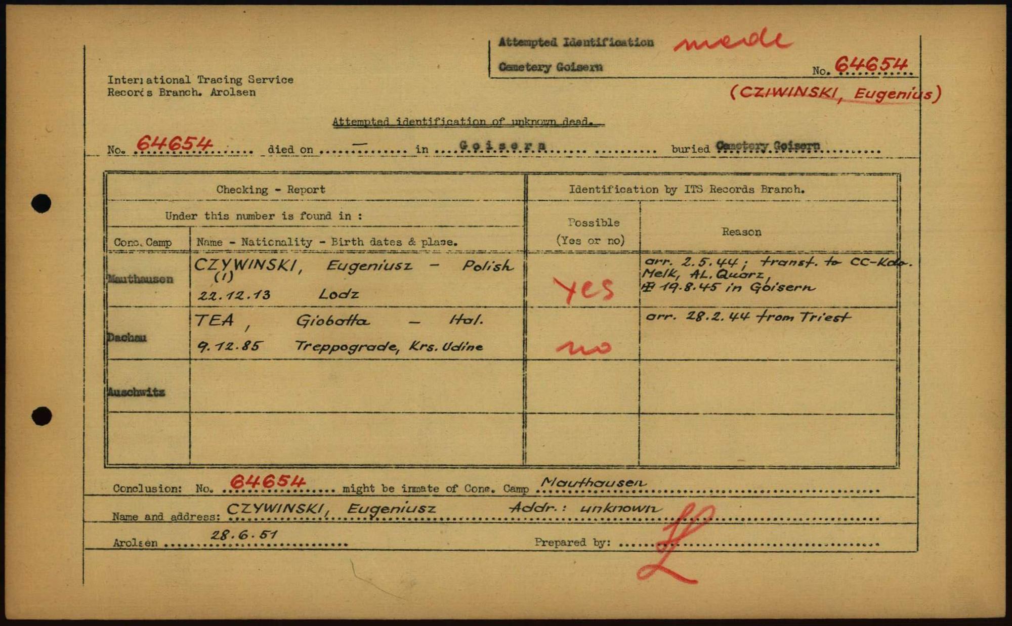 Einen Kommentar schreiben →Attempted Identification of Unknown Dead - Cemeteries: Ergebnisse der Identifizierung... 0008 (84615079)