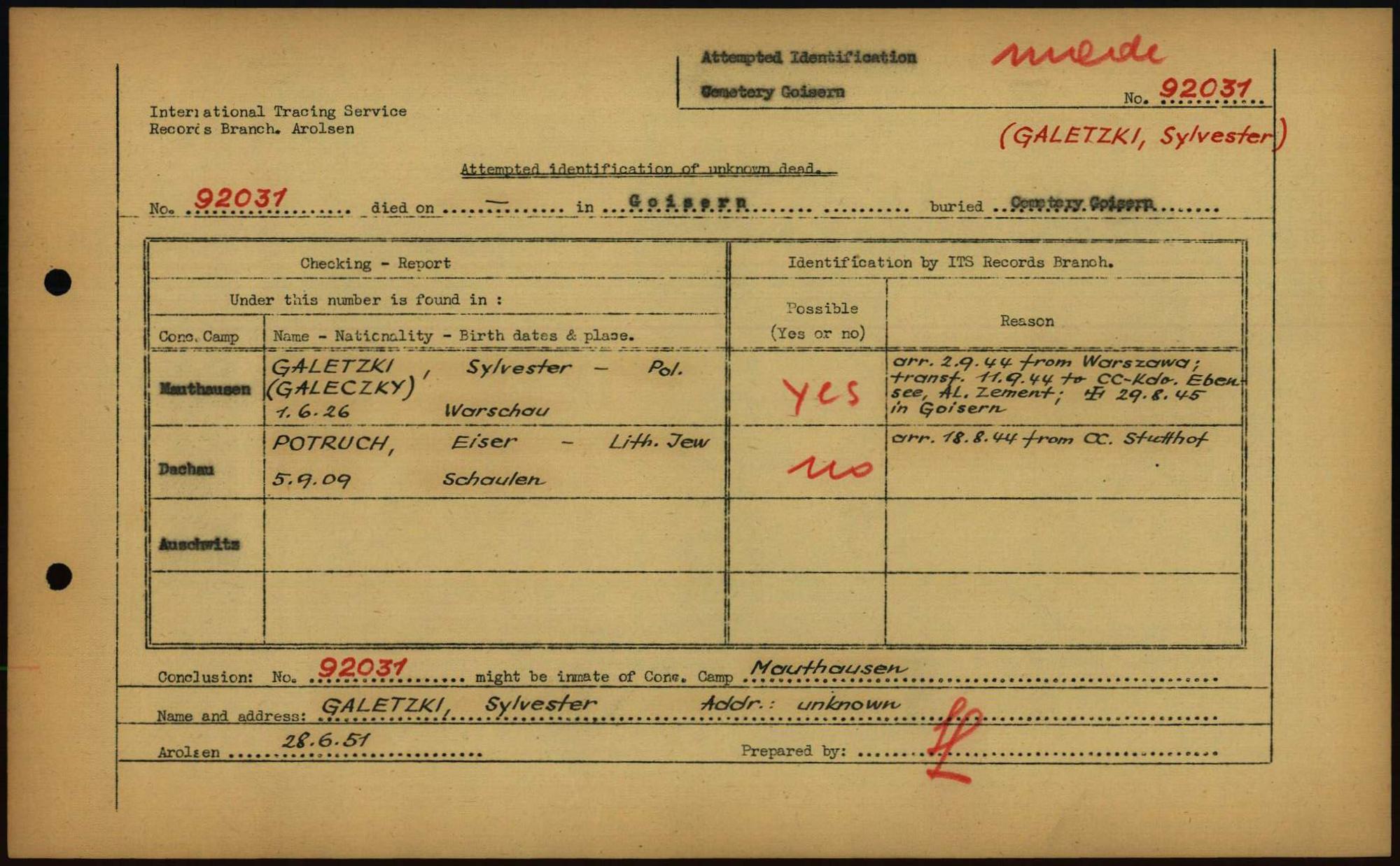 Einen Kommentar schreiben →Attempted Identification of Unknown Dead - Cemeteries: Ergebnisse der Identifizierung... 0012 (84615083)