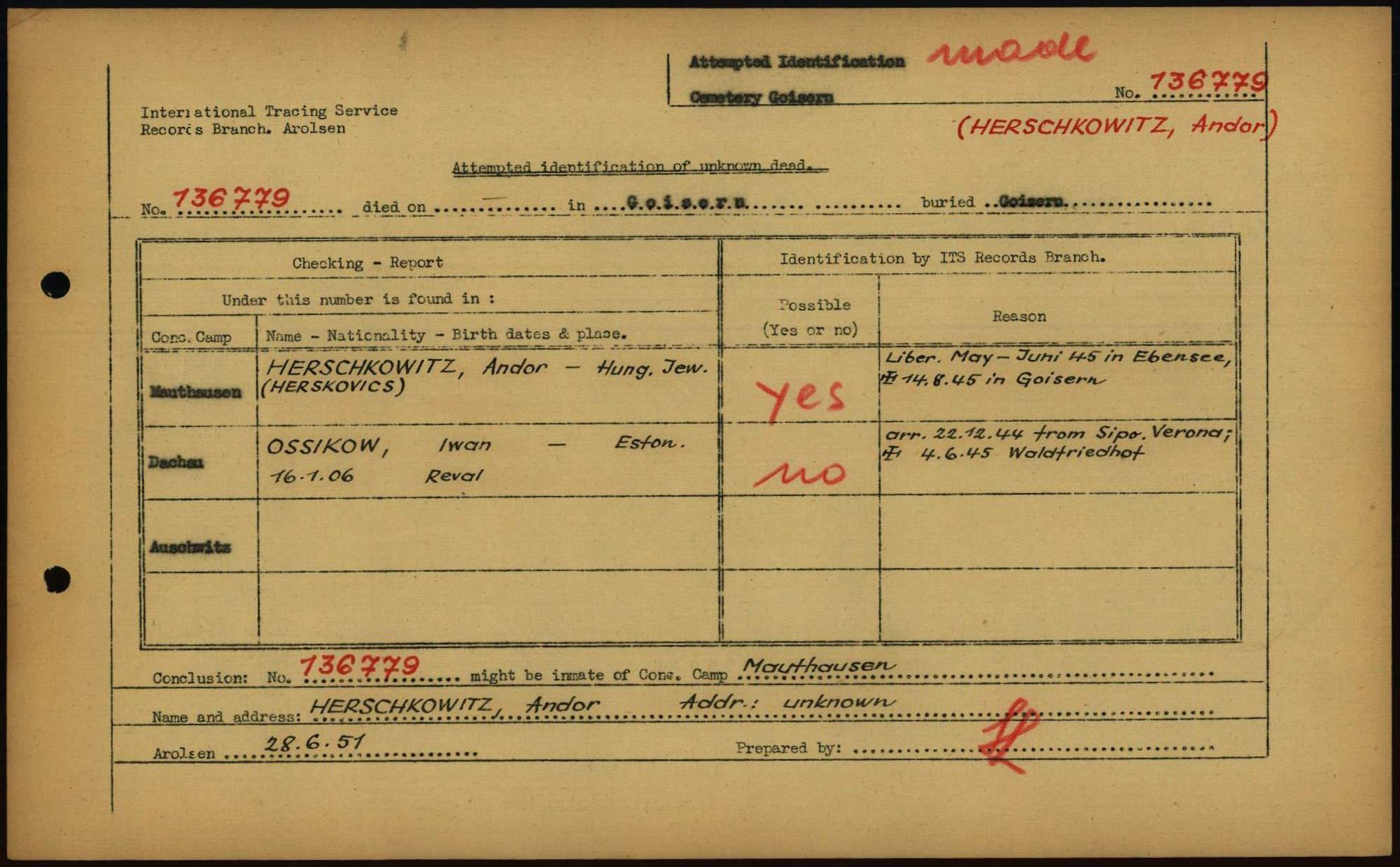 Einen Kommentar schreiben →Attempted Identification of Unknown Dead - Cemeteries: Ergebnisse der Identifizierung... 0022 (84615093)