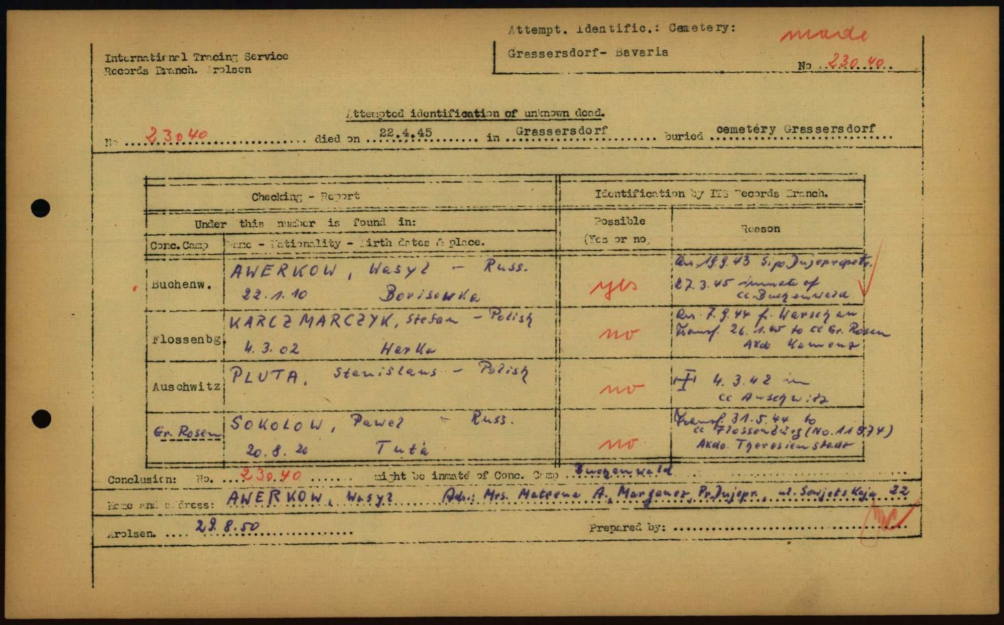 Einen Kommentar schreiben →Attempted Identification of Unknown Dead - Cemeteries: Ergebnisse der Identifizierung... 0016 (84615117)