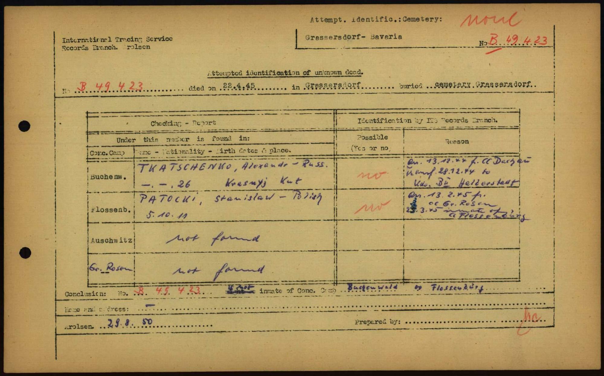 Einen Kommentar schreiben →Attempted Identification of Unknown Dead - Cemeteries: Ergebnisse der Identifizierung... 0025 (84615126)
