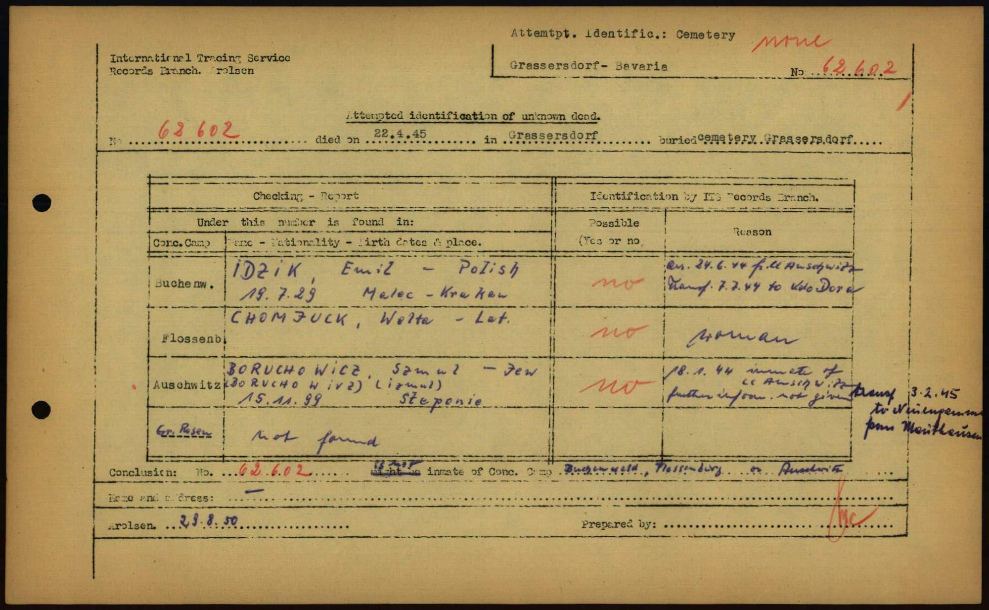 Einen Kommentar schreiben →Attempted Identification of Unknown Dead - Cemeteries: Ergebnisse der Identifizierung... 0029 (84615130)