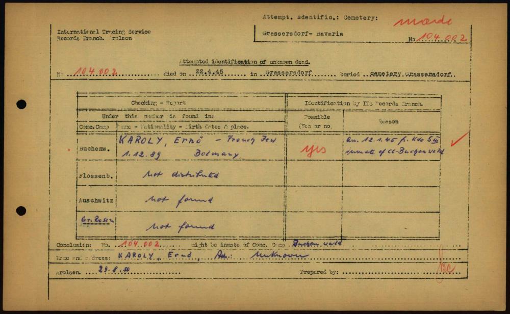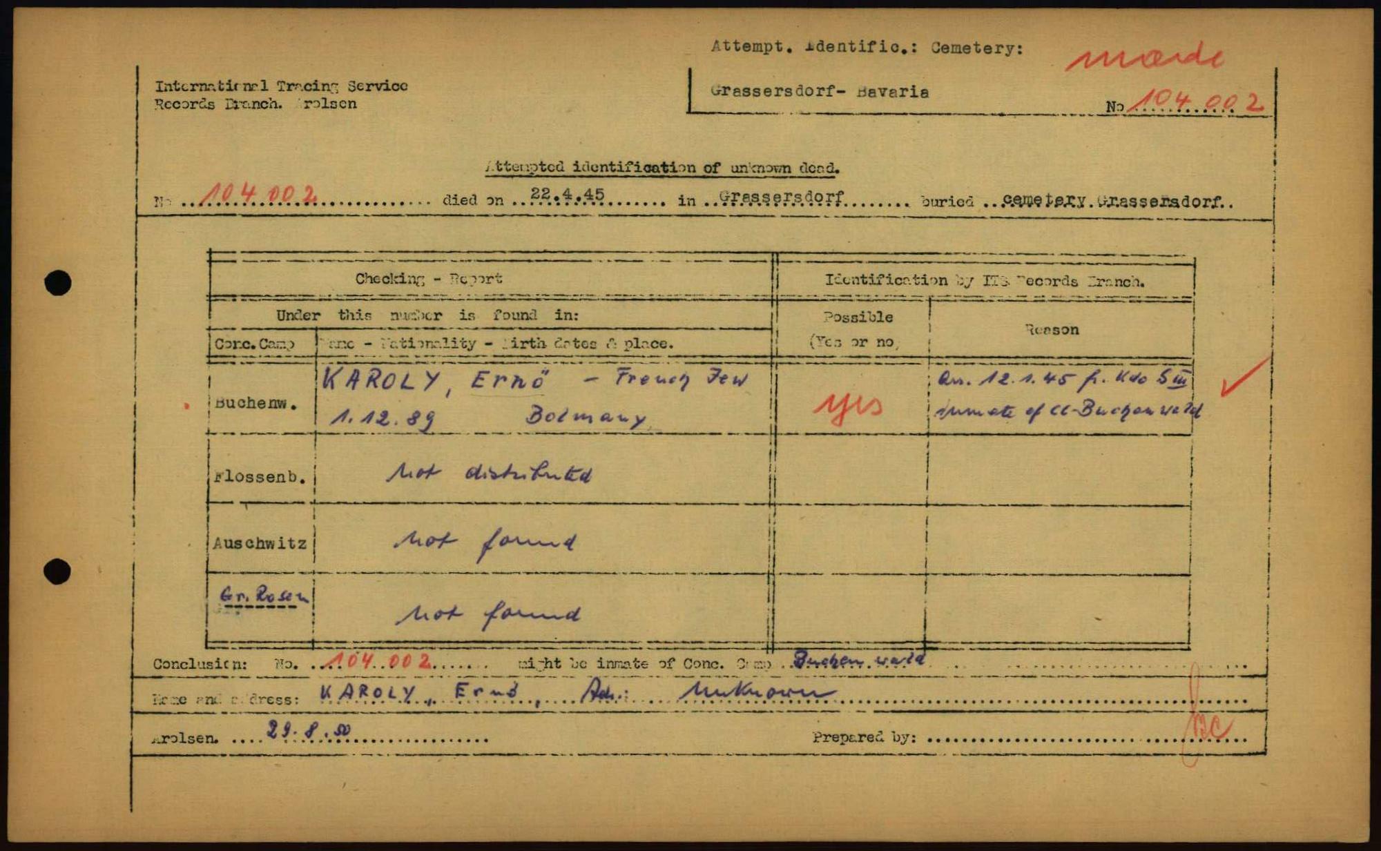Einen Kommentar schreiben →Attempted Identification of Unknown Dead - Cemeteries: Ergebnisse der Identifizierung... 0033 (84615134)