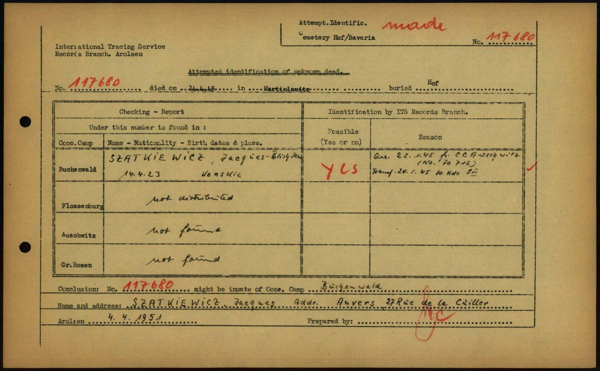 Einen Kommentar schreiben →Attempted Identification of Unknown Dead - Cemeteries: Ergebnisse der Identifizierung... 0021 (84615270)