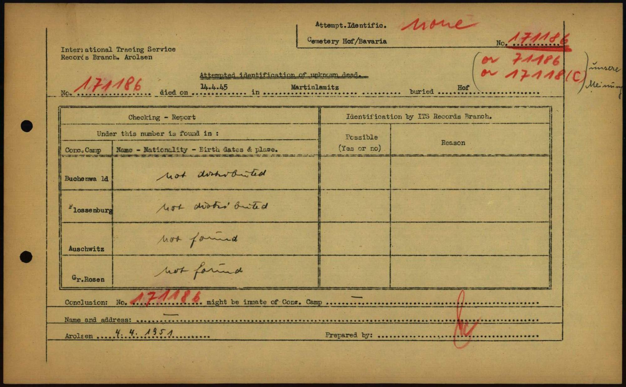 Einen Kommentar schreiben →Attempted Identification of Unknown Dead - Cemeteries: Ergebnisse der Identifizierung... 0025 (84615274)